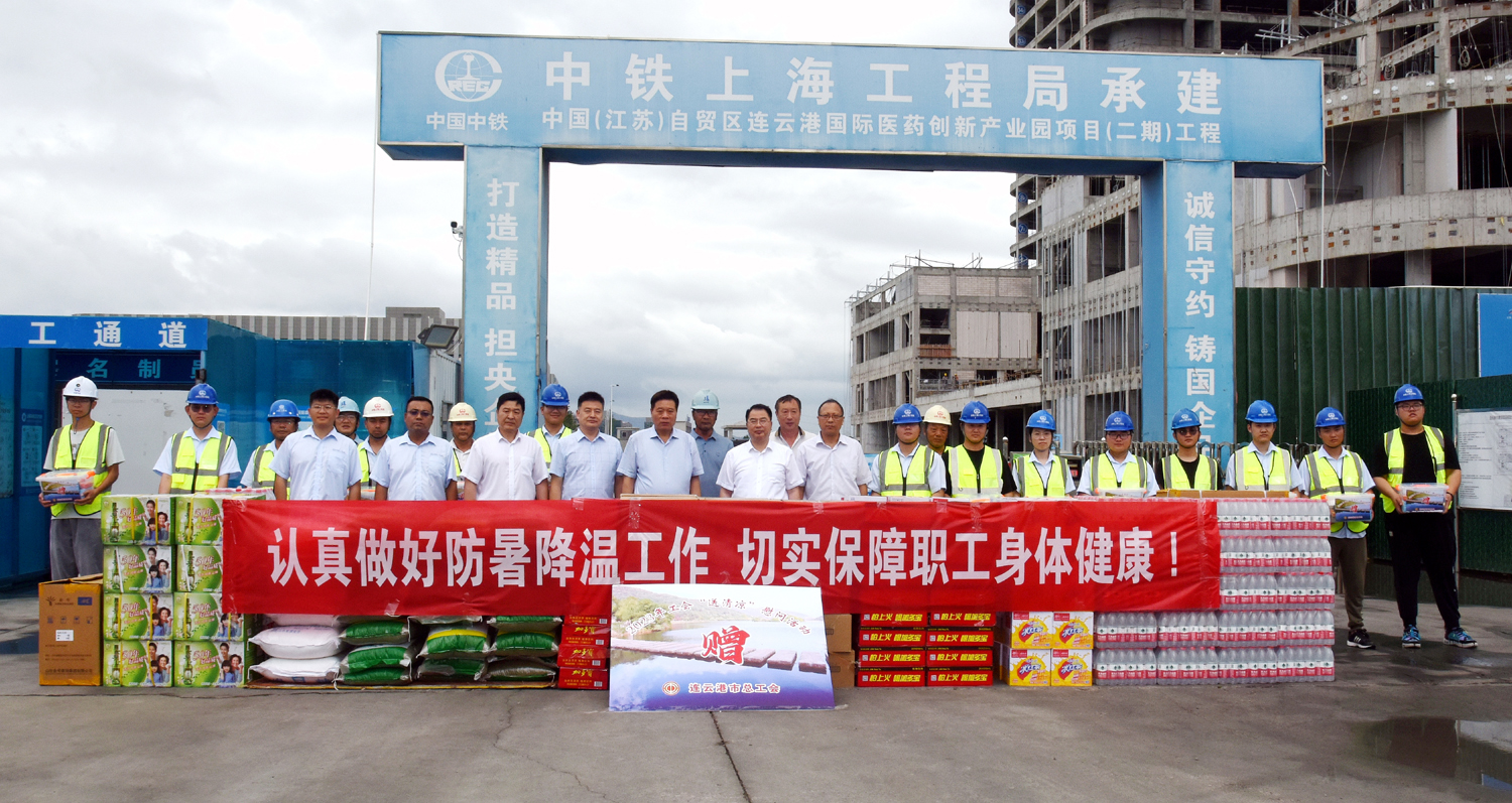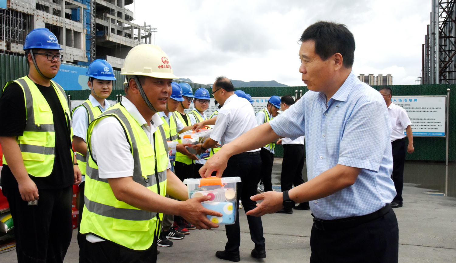 7月28日,市總工會黨組書記、副主席丁維杰帶領(lǐng)市總工會相關(guān)部門負責(zé)人一行,在集團公司黨委副書記、工會主席戴鴻鳴的陪同下,看望慰問奮戰(zhàn)在市重大項目一線的建設(shè)者,并送上防暑急救箱等慰問品。 在集團公司國際醫(yī)藥創(chuàng)新產(chǎn)業(yè)園二期項目工地,丁維杰與職工們親切交談,詳細了解生產(chǎn)生活情況,向頂高溫、冒酷暑,堅守在崗位的工程項目建設(shè)者們致以崇高的敬意和親切的問候,希望他們在堅守崗位的同時,增強自我保護意識,做好防暑降溫工作。同時督促建設(shè)單位要貫徹落實防暑降溫政策措施,增設(shè)防暑降溫設(shè)施,保障項目建設(shè)一線勞動者的人身安全和身體健康。