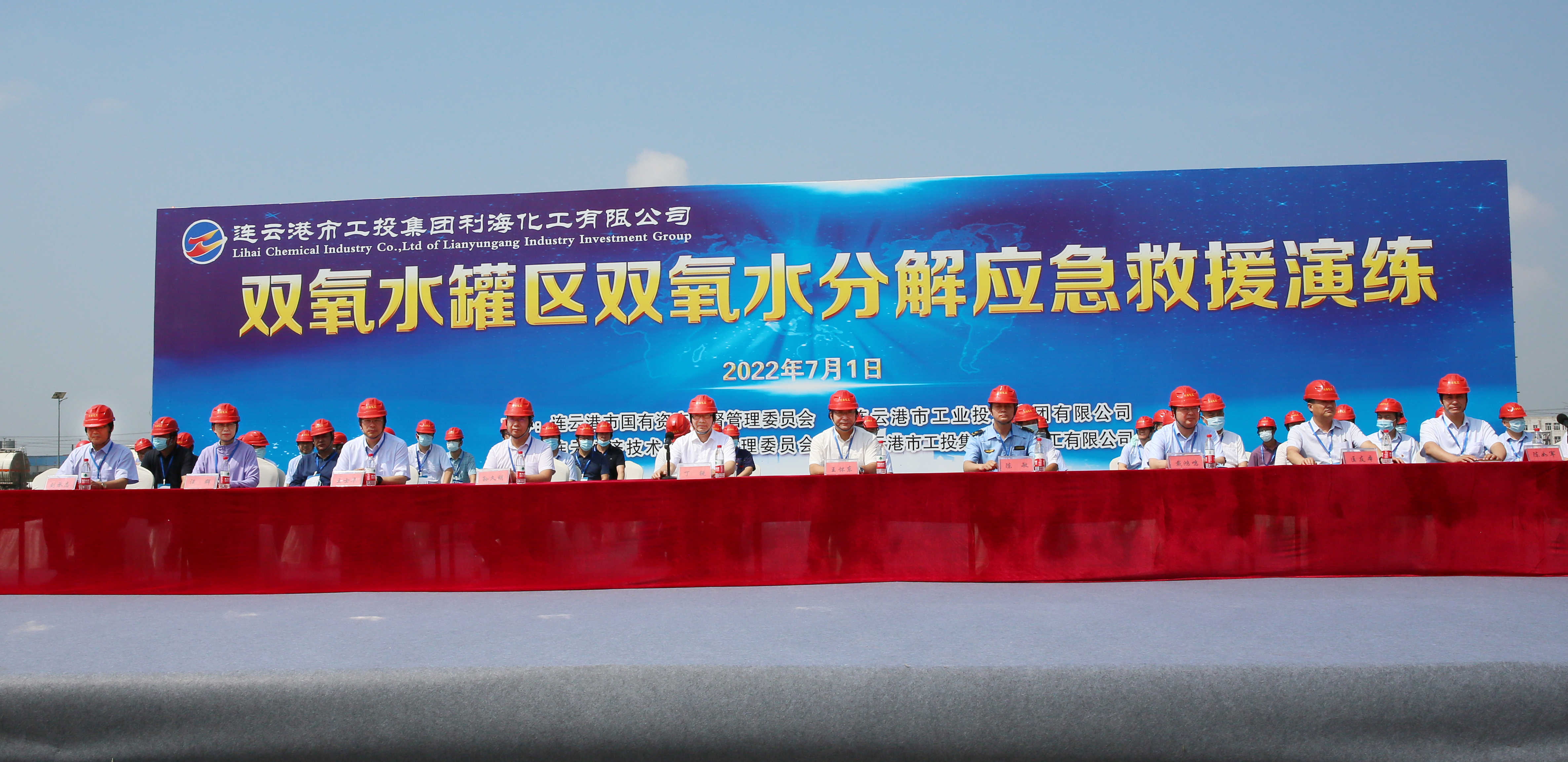 演練模擬利海化工公司雙氧水成品罐區(qū)V0402A儲(chǔ)罐內(nèi)雙氧水分解,罐體升溫,可能發(fā)生爆炸事故,根據(jù)應(yīng)急預(yù)案開(kāi)展應(yīng)急救援處置演練。經(jīng)現(xiàn)場(chǎng)處置、啟動(dòng)公司應(yīng)急預(yù)案、專業(yè)救援力量響應(yīng)等程序,演練取得了圓滿成功。