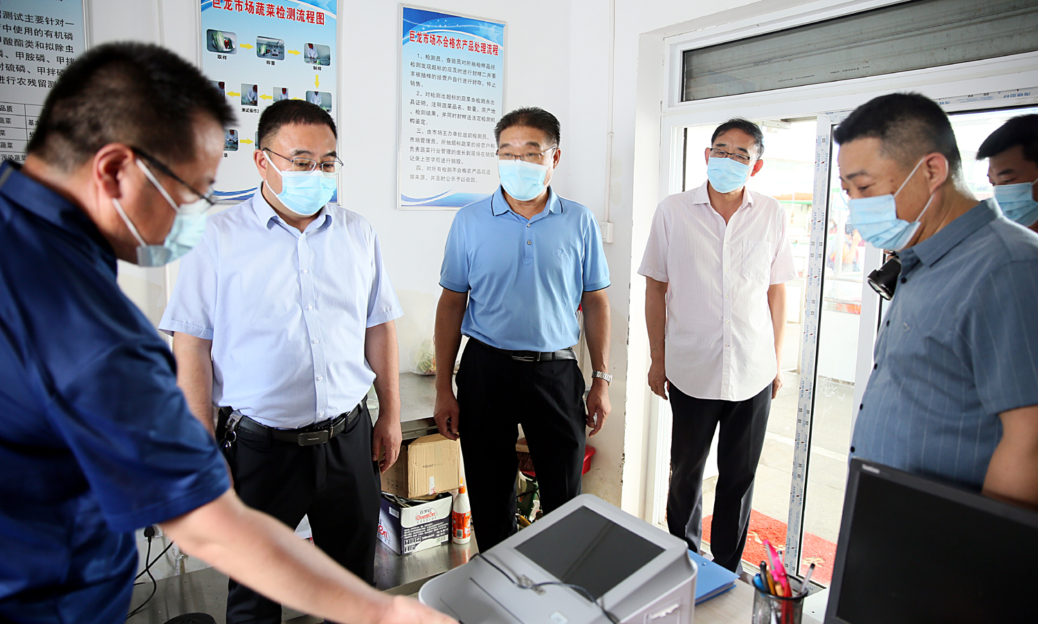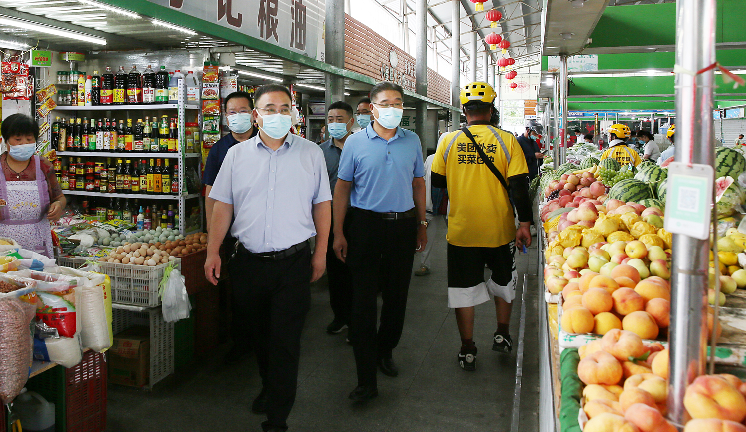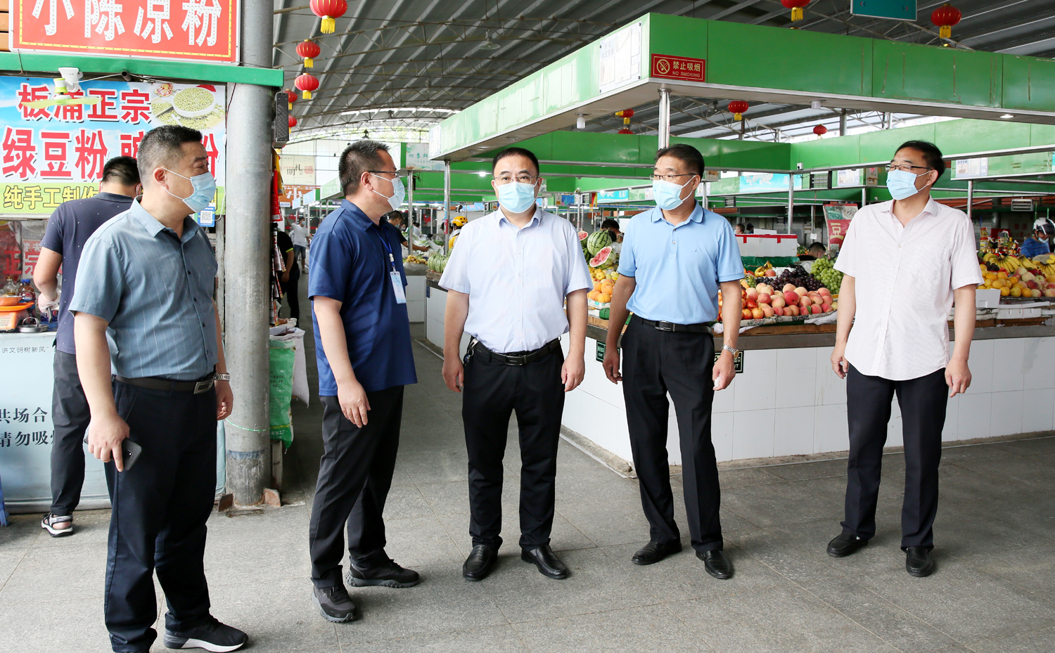 8月5日,集團公司黨委書記、董事長、疫情防控領導小組組長楊龍深入巨龍農貿市場督導疫情防控工作。他強調,要深入貫徹中央、省市委疫情防控指示精神,保持疫情防控高壓態(tài)勢,抓實抓細抓嚴各項措施,守護好市民的“菜藍子”“米袋子”。集團公司工會主席、疫情防控領導小組辦公室主任劉承志,金航資產經(jīng)營公司相關負責人陪同督導。 楊龍一行按防疫要求完成體溫測量、蘇康碼掃碼后,進入市場區(qū)域,認真察看市場內口罩佩戴、掃碼查驗、體溫檢測等基礎防疫措施,仔細詢問人員管控、防疫消殺等制度落實情況。查看了解糧油肉蛋奶及水果、蔬菜等重要食品的市場供應、保質穩(wěn)價等情況。楊龍指出,農貿市場人員流動性大、接觸頻繁,是疫情防控的重要區(qū)域。金航公司要切實落實好主體責任,按照市疫情防控指示精神和集團“十排查”“十到位”的要求,嚴格落實好各項措施,做好入口人員管理,嚴格落實體溫檢測、佩戴口罩、健康碼掃碼等工作,全面落實環(huán)境清潔消毒。要嚴把食品安全關,嚴格履行相關手續(xù),確保食品流通各環(huán)節(jié)安全可控。要規(guī)范經(jīng)營,確保市場食品供應充足、價格穩(wěn)定、消費安全。同時要積極引導群眾和工作人員做好自我防護,保持良好衛(wèi)生習慣,倡導健康生活方式。