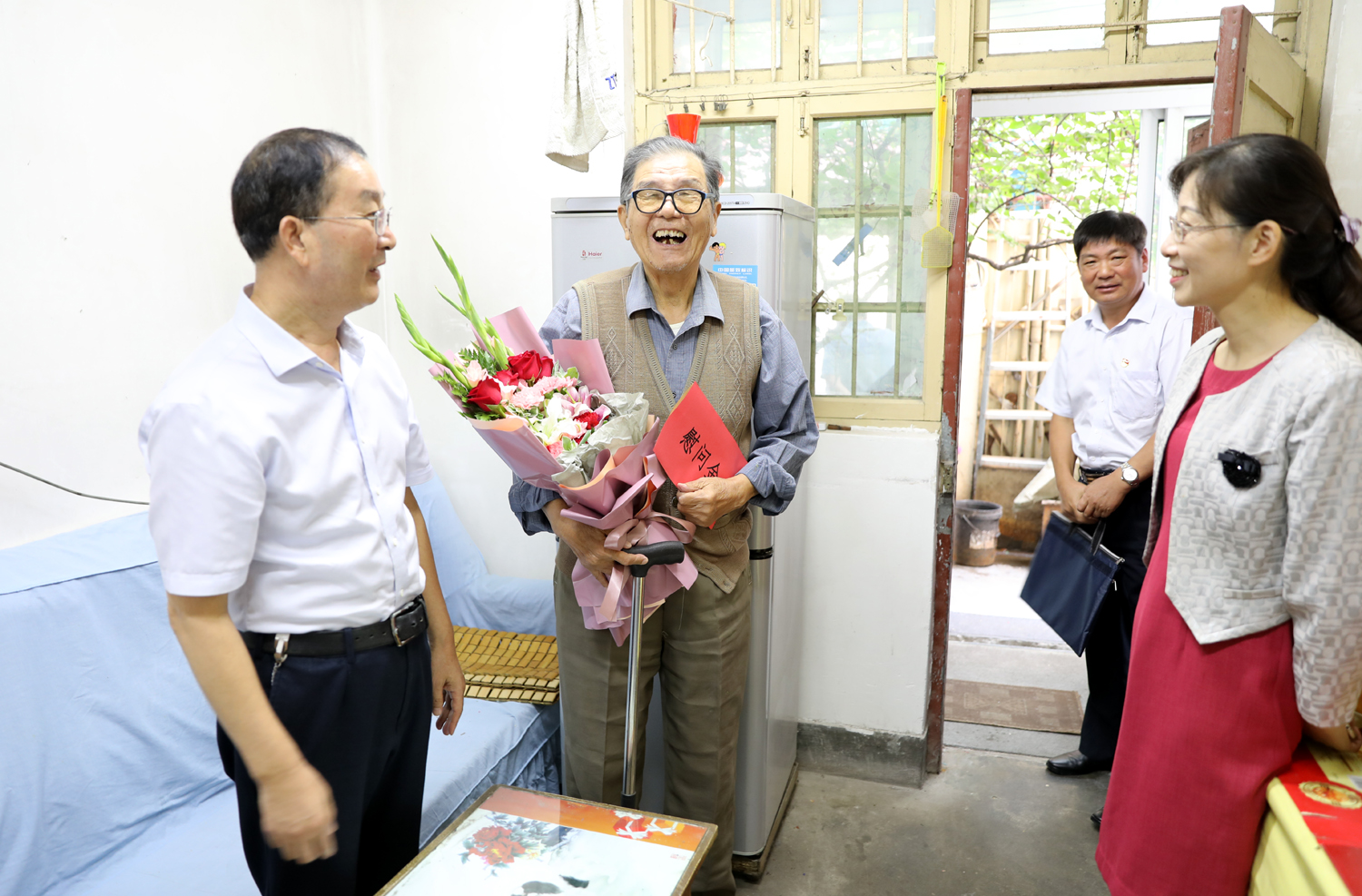 每到一處,集團(tuán)公司領(lǐng)導(dǎo)都與老人們拉家常,詳細(xì)詢問(wèn)他們家庭生活情況和身體健康情況,介紹集團(tuán)公司發(fā)展情況,感謝老同志對(duì)新中國(guó)建設(shè)事業(yè)與集團(tuán)公司改革發(fā)展作出的重要貢獻(xiàn)。并指出,在新中國(guó)波瀾壯闊的革命建設(shè)歷程中,無(wú)數(shù)黨員前仆后繼作出了貢獻(xiàn)和犧牲。老黨員、老同志是我們的寶貴財(cái)富,要大力弘揚(yáng)老一輩的優(yōu)良傳統(tǒng),要帶著感情和責(zé)任做好服務(wù),從生活上、精神上更加關(guān)心、關(guān)愛(ài)他們,及時(shí)幫助解決生活中的困難和問(wèn)題,讓老黨員老有所養(yǎng)、老有所樂(lè)。