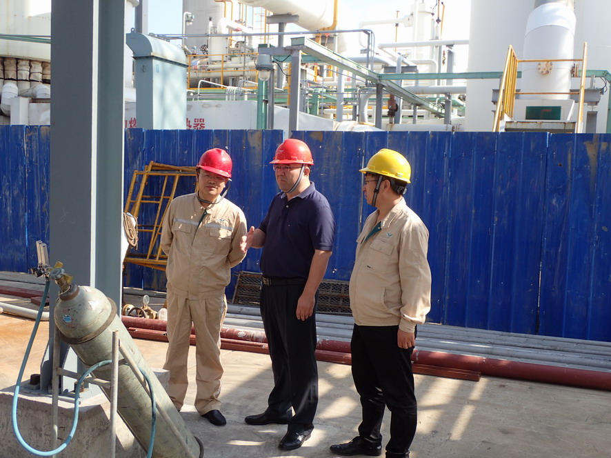 楊龍一行實(shí)地查看了氯堿公司氫氣純化技改項(xiàng)目、天然氣制氫壓縮機(jī)廠房現(xiàn)場和氨綸公司精制罐區(qū)、危廢庫等重點(diǎn)區(qū)域,就相關(guān)設(shè)備運(yùn)行、安全防范情況進(jìn)行詳細(xì)了解。楊龍強(qiáng)調(diào),新中國成立70周年即將到來,要把安全工作當(dāng)成一項(xiàng)重要的政治任務(wù),認(rèn)真做好各個(gè)重點(diǎn)部位、關(guān)鍵裝置等環(huán)節(jié)的排查和治理,提高專業(yè)化水平,做到立行立改。要提高安全生產(chǎn)意識,認(rèn)真落實(shí)好安全檢查、節(jié)假日應(yīng)急管理和值班制度,強(qiáng)化對設(shè)備的檢查維護(hù)和隱患整改,確保節(jié)日期間安全生產(chǎn)平穩(wěn)運(yùn)行。