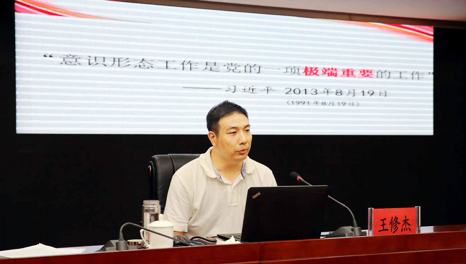 王修杰以“牢牢掌握意識形態(tài)工作的領導權”為題,結合國際國內形勢和我市實際,圍繞充分認識意識形態(tài)工作的極端重要性、深刻把握當前意識形態(tài)領域復雜形勢、全面落實黨委意識形態(tài)工作責任制等方面內容,深入淺出的剖析解讀了意識形態(tài)工作的基本內涵、重大意義,報告主題鮮明、內涵深刻、闡述透徹、聯系實際、條理清晰,既有理論思考、又有經驗總結,為與會人員深刻理解和把握新時代國企意識形態(tài)工作的新使命、新要求、新任務、新方法具有很強的現實指導意義。