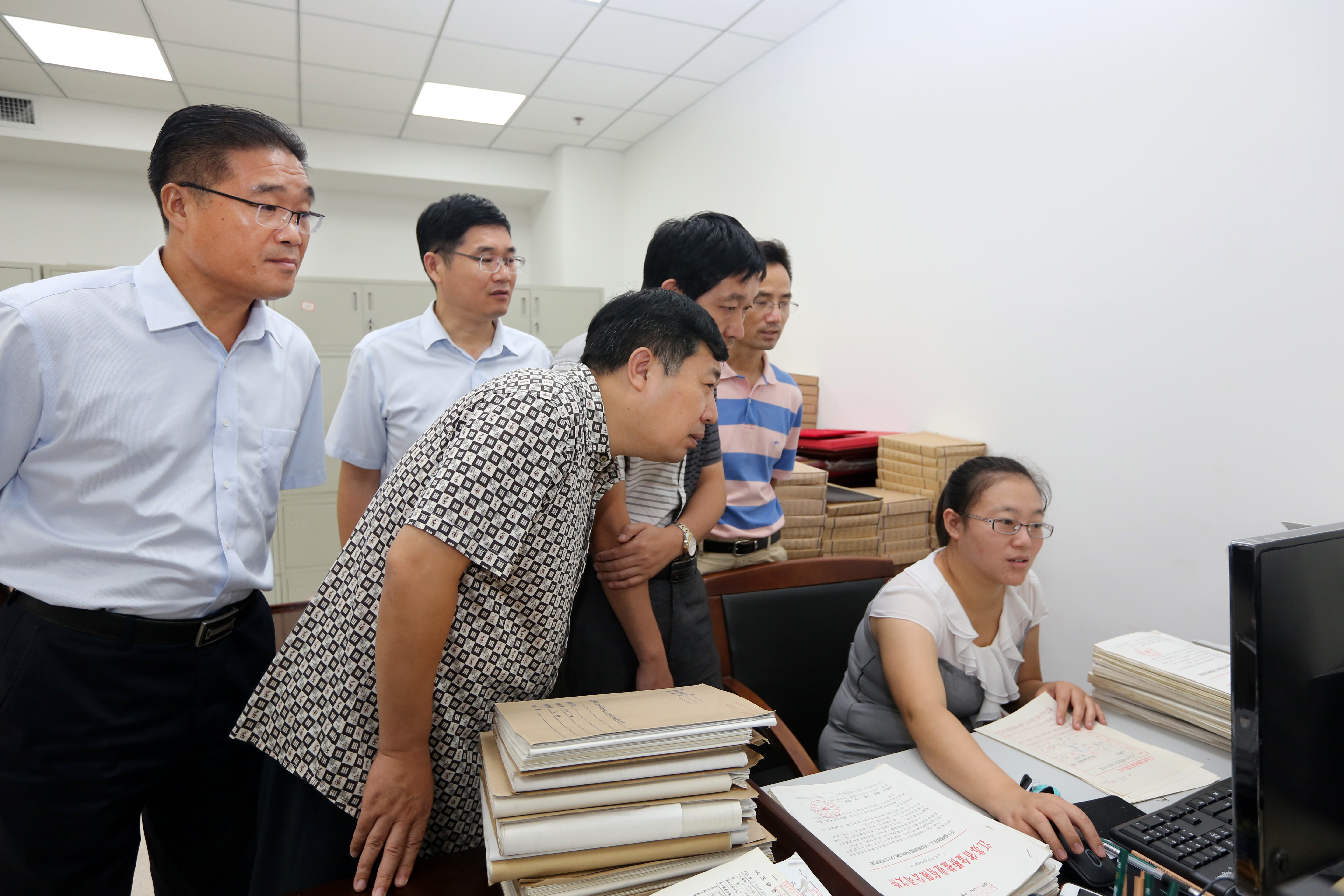 8月8日下午,市檔案局副局長韋林海一行四人來我公司檢查指導(dǎo)檔案工作,集團公司工會主席劉承志陪同。