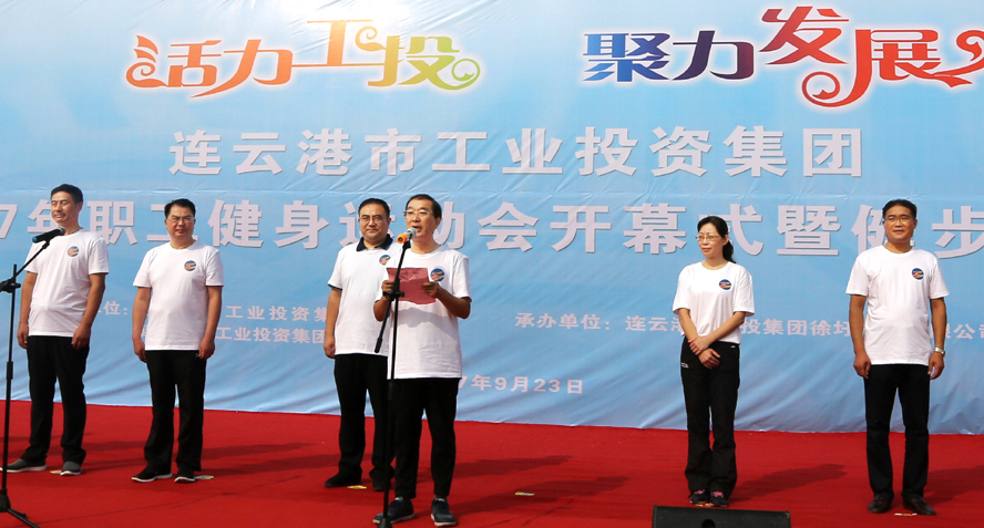 金秋九月,天藍氣清。為豐富職工業(yè)余文化生活,展示職工健康文明、積極向上的精神面貌,9月23日上午,集團公司2017年職工健身運動會開幕式暨健步走活動在徐圩新區(qū)云湖廣場隆重舉行。集團公司董事長、黨委書記楊龍宣布運動會開幕,并為健步走活動發(fā)令。總經(jīng)理胡建明致開幕詞,工會主席戴鴻鳴主持開幕式。
