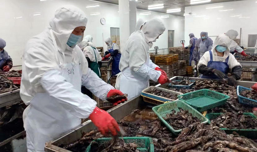 11月20日清晨不到6點,海州灣公司派遣員工已經(jīng)在海福特8號車間開始了一天緊張的忙碌,工人們正在熱火朝天地進行魷魚凍品解凍工作?!耙咔閯偘l(fā)生時,非常擔憂工廠會全面停工停產(chǎn),但實際上從11月13日疫情暴發(fā)以來,我們在臺北公司協(xié)調(diào)下,一邊強化疫情管控,一邊有序組織生產(chǎn),一天都沒有停產(chǎn),保持了生產(chǎn)連續(xù)性。”車間主任趙化圖介紹。自10月初海州灣公司承包經(jīng)營海福特8號生產(chǎn)線來,約一個半月生產(chǎn)成品34噸、半成品130噸,產(chǎn)值600余萬元,在疫情之下為臺北公司帶來豐厚效益,而這僅僅是疫情當下臺北投資公司“一手打傘、一手干活”的一個生動縮影。