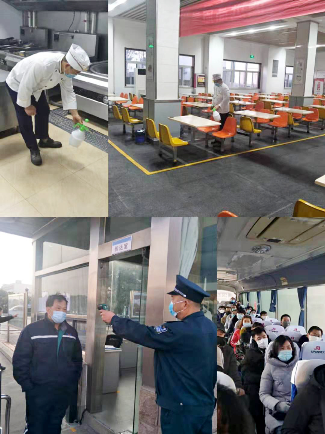 全力做到“三個全覆蓋”。一是消殺全覆蓋,做到無死角。結(jié)合疫情防控實(shí)施方案全面開展衛(wèi)生整治消殺,對進(jìn)廠車輛、食堂、廁所、辦公區(qū)、操作平臺、作業(yè)電梯等進(jìn)行全面消毒,每4小時進(jìn)行噴灑消毒液消毒。二是摸排全覆蓋,做到無縫隙。以部門為單位進(jìn)行全員摸排并建立日報(bào)制度。在公司門口使用溫度檢測儀器測量入廠人員體溫,體溫正常允許進(jìn)入,發(fā)現(xiàn)體溫異常人員立即上報(bào)公司安全部或者值班領(lǐng)導(dǎo)執(zhí)行應(yīng)急隔離救援。對外地回廠人員,特別對疫區(qū)或途徑疫區(qū)的到廠人員進(jìn)行重點(diǎn)摸排,對與武漢方面人員有接觸的員工采取暫停上班、居家隔離措施。三是宣傳全覆蓋,做到無遺漏。利用公司宣傳欄、紅色長廊、網(wǎng)站、公眾號、微信群等宣傳陣地開展宣傳培訓(xùn)。將公司的防控措施、應(yīng)急預(yù)案、就醫(yī)流程、疫情防護(hù)等應(yīng)知應(yīng)會的防疫知識傳達(dá)到每一位員工,引導(dǎo)他們科學(xué)防疫。