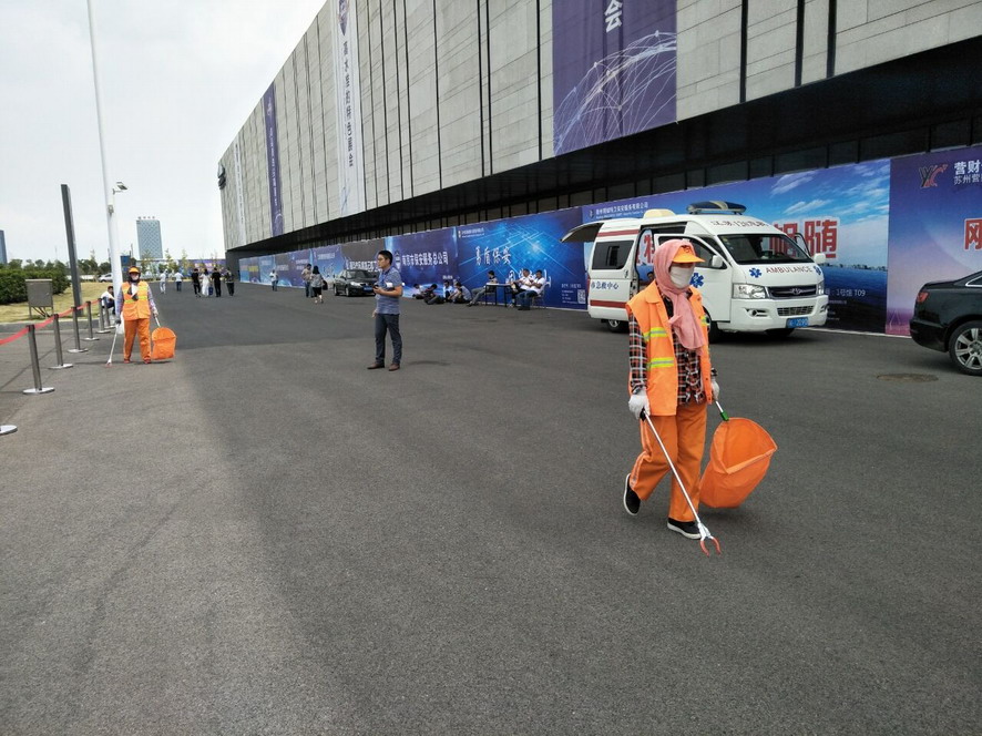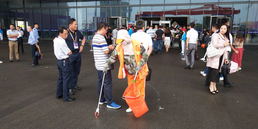 9月14日,連續(xù)忙碌了兩個(gè)禮拜的職工們還沒(méi)來(lái)得及休息,便又投入到“連博會(huì)”的準(zhǔn)備工作中去。由于本屆“連博會(huì)”共有來(lái)自27個(gè)國(guó)家和地區(qū)的420家企業(yè)參展,展覽總面積達(dá)3.7萬(wàn)平方米,各家展商在布置展臺(tái)時(shí),各類(lèi)生活垃圾、裝修垃圾等一度將該公司布設(shè)的100多個(gè)垃圾桶都塞滿(mǎn)了,在安排好人工清理的同時(shí),該公司還安排垃圾清運(yùn)車(chē)對(duì)積存垃圾進(jìn)行清理清運(yùn),組織灑水車(chē)對(duì)會(huì)場(chǎng)及周邊道路進(jìn)行沖洗,一直到9月18日晚上9點(diǎn)左右才完成準(zhǔn)備工作。19日“連博會(huì)”開(kāi)幕當(dāng)天,負(fù)責(zé)現(xiàn)場(chǎng)保潔工作的職工們?cè)缟?/span>6點(diǎn)多就趕到了會(huì)場(chǎng),冒雨在會(huì)場(chǎng)周邊開(kāi)始忙碌,一臺(tái)大型清掃車(chē)和一臺(tái)灑水車(chē)也在會(huì)場(chǎng)旁隨時(shí)待命。到了中午,當(dāng)展商們?cè)谑覂?nèi)小憩的時(shí)候,室外的職工們?yōu)榱瞬坏⒄`事,站在風(fēng)口匆匆地扒拉兩口混雜著雨水的盒飯,就又投入到緊張的清理工作中去。僅19號(hào)開(kāi)幕當(dāng)天,累計(jì)清理各類(lèi)垃圾7噸左右,為“連博會(huì)”的正常召開(kāi)提供了一個(gè)干凈、整潔的會(huì)場(chǎng)環(huán)境。