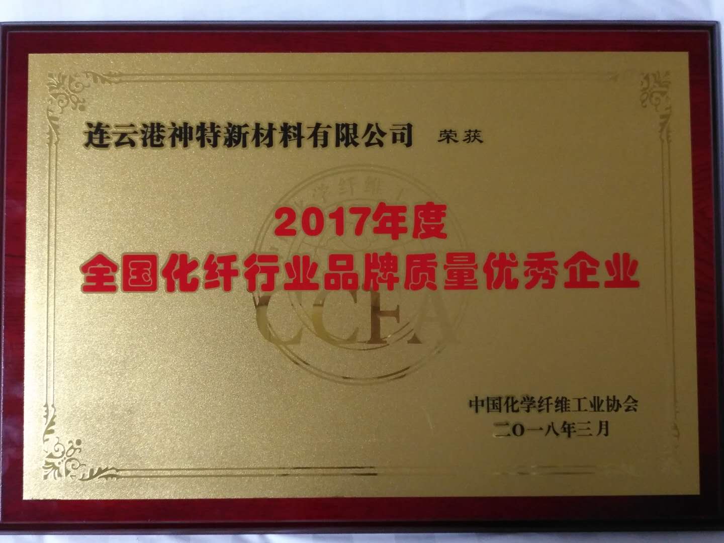 3月13-14日,由中國化學纖維工業(yè)協(xié)會主辦的“中國化纖行業(yè)高質量發(fā)展論壇暨第四次理事會擴大會議”在上海召開。會上,神特公司榮獲“2017年度全國化纖行業(yè)品牌質量優(yōu)秀企業(yè)”稱號。