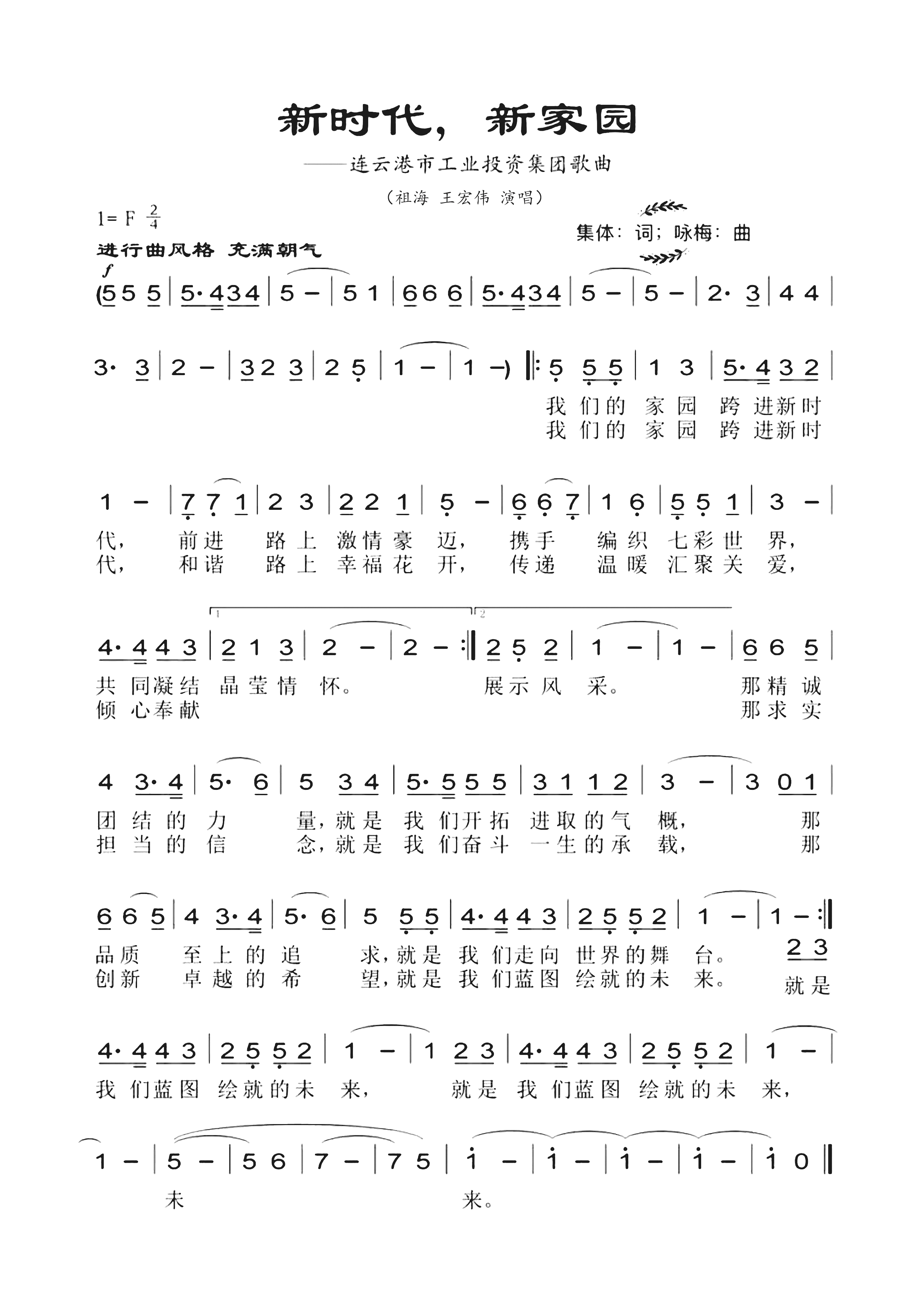 集團(tuán)公司企業(yè)歌曲《新時(shí)代,新家園》由我國(guó)著名作曲家王詠梅作曲,我國(guó)著名歌唱家祖海、王宏偉演唱,亞洲愛樂樂團(tuán)演奏,愛樂樂團(tuán)藝術(shù)總監(jiān)、首席指揮黃立杰指揮。
