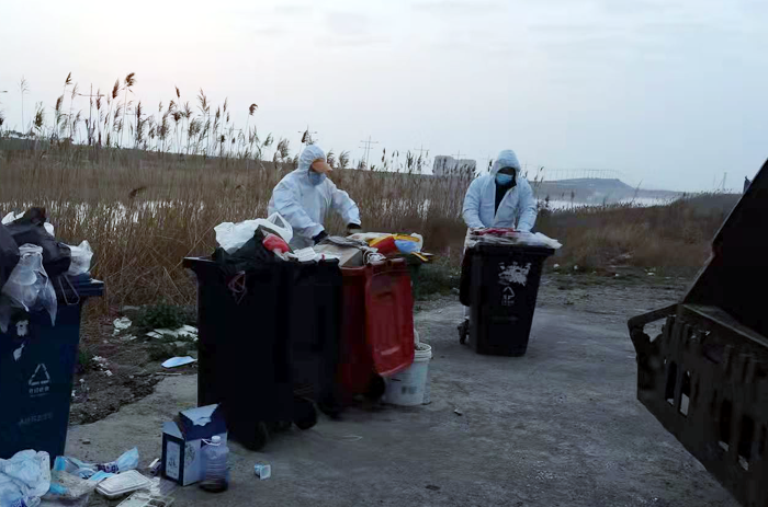 疫情防控期間,保潔分公司要保障徐新路、海濱大道等主干道路及幸福家園及張圩小區(qū)周邊道路等范圍(600多萬平方米)垃圾日常清運的同時,要將徐圩新區(qū)人民醫(yī)院核酸檢測點垃圾清運到位。他們在共產(chǎn)黨員耿恒發(fā)的帶領下,做好疫情防控措施,早5晚8開展工作。進入三月,天氣逐漸轉(zhuǎn)暖,防護服“籠罩”已不是那么舒服,在陽光照射下,汗水很快便浸濕了衣襟,但他們無怨無悔。面對大量檢測廢物和口罩,帶著未知的病毒風險,日清運垃圾30多噸,清理消毒各類垃圾桶600余個。