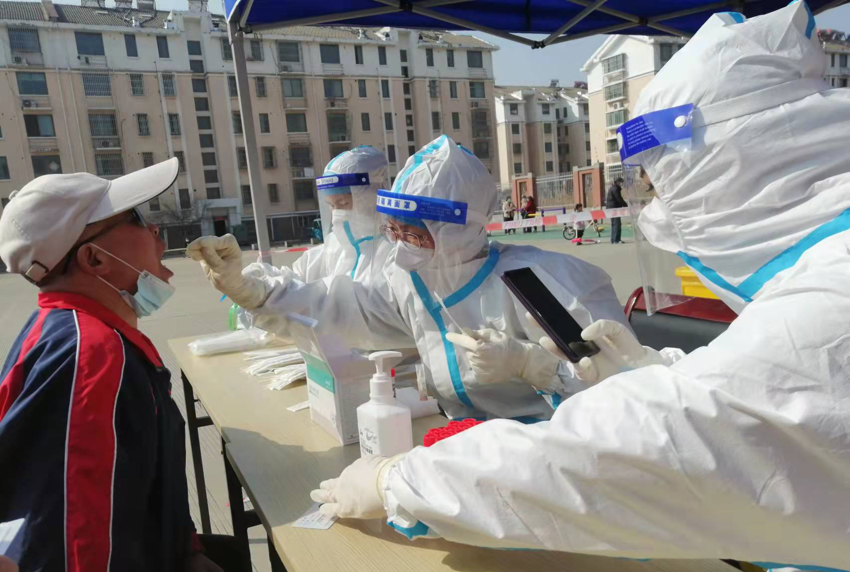 “現(xiàn)在我們是封控區(qū),不能出去給政府添亂,閑也是閑著,所以社區(qū)一招手我們就來了”這是臺(tái)北女工委副主任宋文靜的一席話。這波疫情來的突然,緊急核酸檢測緊缺志愿者服務(wù)。在公司”戰(zhàn)疫情、爭貢獻(xiàn)“主題實(shí)踐活動(dòng)感召下,她已經(jīng)在小區(qū)擔(dān)綱核酸檢測志愿者有兩個(gè)夜晚了。而這一幕決不只在海州主城區(qū),在開發(fā)區(qū)昌圩社區(qū),臺(tái)北志愿服務(wù)隊(duì)已經(jīng)成為社區(qū)防疫主力。疫情伊始,臺(tái)北下屬海州灣公司黨支部一班人就已經(jīng)奮戰(zhàn)在社區(qū)防疫一線。黨支部副書記蘇玲、女工胡超,與專業(yè)醫(yī)護(hù)人員一道,穿上厚重防護(hù)服,直接站在核酸檢測最前線,這一站就是12小時(shí)。值班后稍作休息他們就又聯(lián)系總經(jīng)理霍正鋼、翔立黨支部副書記姜海洋、入黨積極分子朱文健等參與聯(lián)防聯(lián)控,擔(dān)當(dāng)疫情義務(wù)宣傳員。