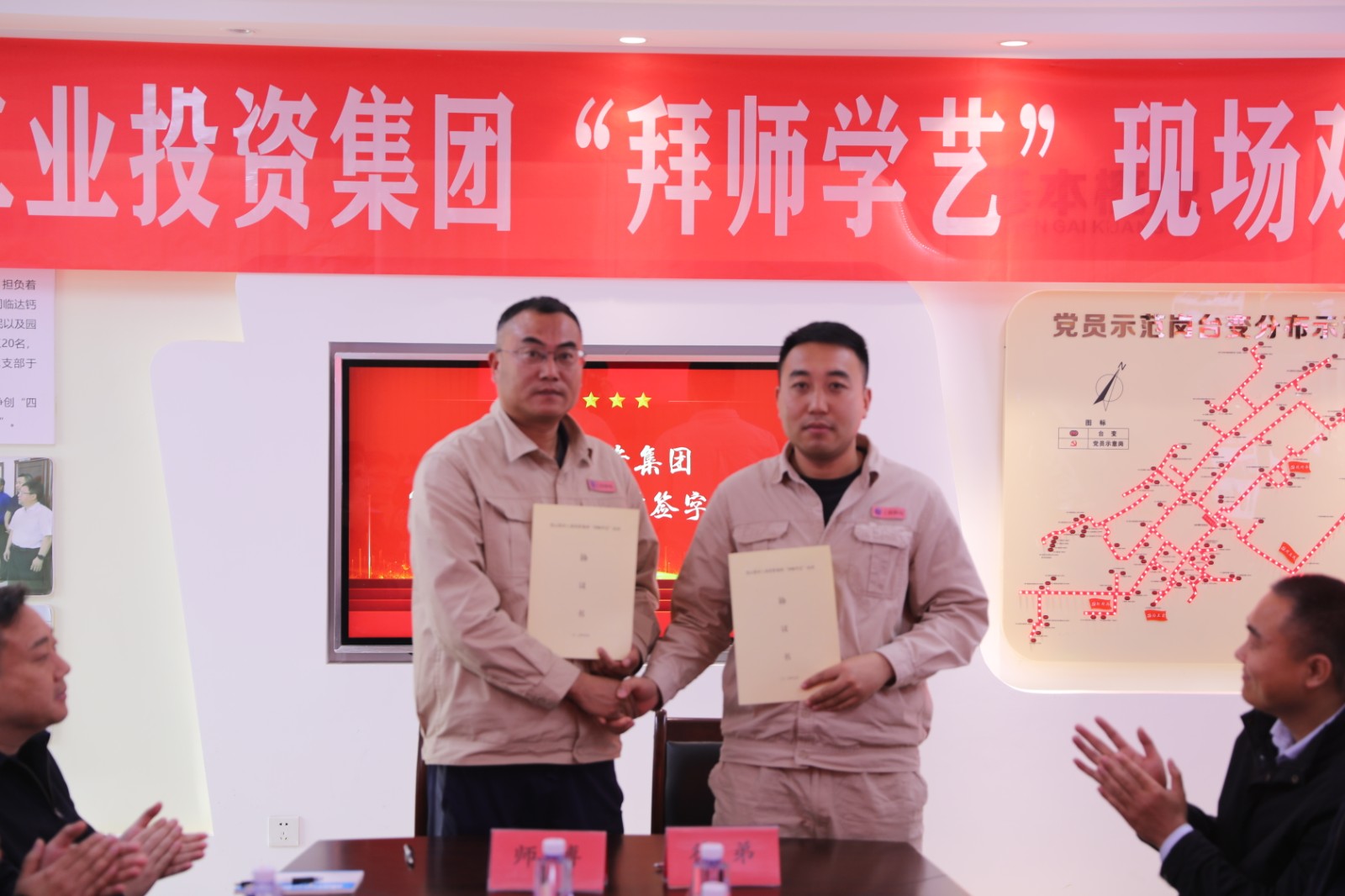 觀摩結(jié)束后,活動進入師徒代表交流環(huán)節(jié)。市勞模王建作為師傅代表率先發(fā)言,他結(jié)合自身帶徒經(jīng)歷,毫無保留地分享了培養(yǎng)新人的心得感悟。隨后,在全體與會人員的共同見證下,師徒雙方鄭重簽訂 "拜師學藝" 結(jié)對協(xié)議書,這一紙契約不僅是責任的傳遞,更是匠心的延續(xù)。活動現(xiàn)場還舉行了贈書儀式,一本本凝聚著知識與經(jīng)驗的書籍從師傅手中傳遞到徒弟手中,猶如一盞盞明燈,照亮了徒弟們的成長之路。