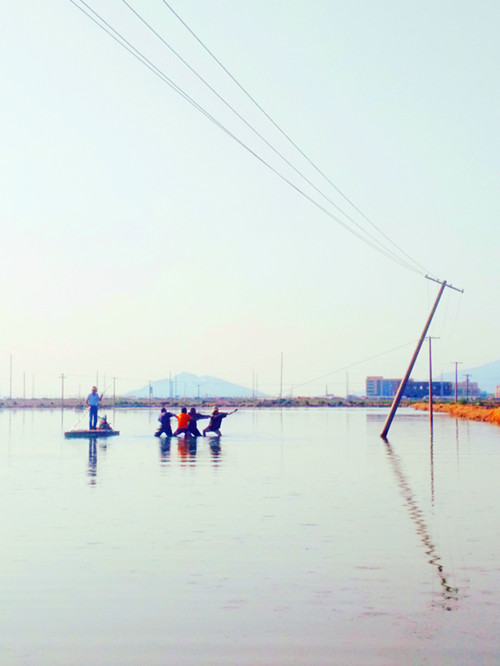 9月20日,該所組織人員進行搶修。搶修人員經(jīng)過現(xiàn)場勘查后,發(fā)現(xiàn)隱患地點處于池塘中,搶修車輛等大型工器具無法到達,只能靠人工搶修。在與魚塘養(yǎng)殖戶協(xié)商后,俞德春、楊祖加、楊新軍等搶修人員在對低壓線路采取停電、驗電、掛接地等安全措施后,利用小木船來回穿梭、傳送材料,再跳入沒腿深的水里,將電桿扶正、加固。此時,水面上的船、水中的人、拖拽的線路成了鏡頭中的新聞亮點。最后在經(jīng)過半個多小時的特色搶修后,成功恢復供電。(錢明華)