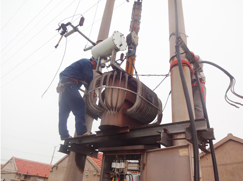 連日來,天氣持續(xù)高溫,用電負(fù)荷也隨之加大,轄區(qū)原有設(shè)計的供電線路及變壓器容量已不能滿足居民生活用電的需求,供用電矛盾日益突出。特別是4號變壓器供電區(qū)域大、容量小,已嚴(yán)重危急到供電質(zhì)量和供電安全運(yùn)行。為此,所領(lǐng)導(dǎo)決定將原有的160KVA變壓器更換為250KVA變壓器。為了避開高溫時斷,大家起早作業(yè),但還是忙的汗流浹背。他們顧不上休息,加快設(shè)備更換速度,終于在上午八點前完成更換任務(wù),恢復(fù)供電。(王志勇)