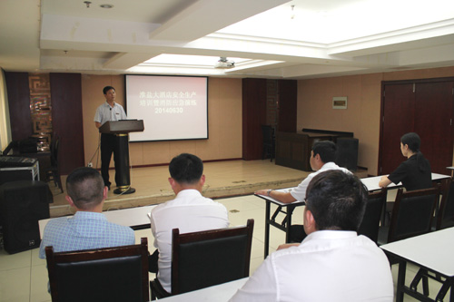 安全宣教一著不讓。該酒店組織全體員工觀看安全事故教育警示片,宣傳安全生產(chǎn)知識,提高員工安全生產(chǎn)意識,營造“安全生產(chǎn)月”濃厚氛圍?;顒悠陂g,共召開安全會議2次,下發(fā)文件2份,集中安全培訓(xùn)2次,開展消防應(yīng)急演練1次。