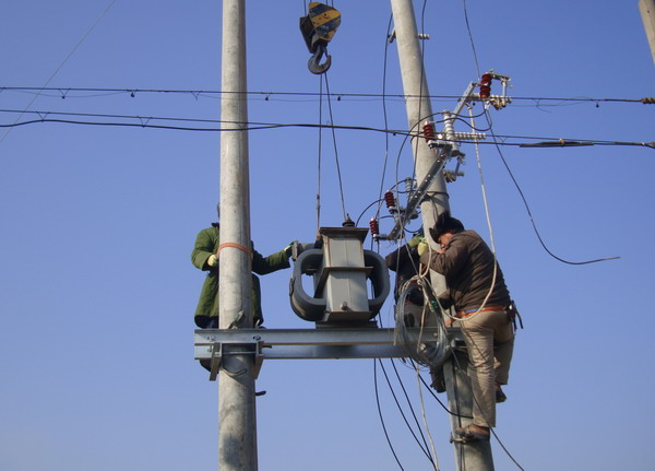 黃化制鈣公司居民區(qū)已有三十多年歷史,目前居住400多戶居民。由于使用年久老化,變壓器容量小、供電半徑大,線路長、線徑細,電壓不穩(wěn),供電效率低。加上居民生活水平提高,用電量增加,供電矛盾日益突出,嚴重影響空調(diào)、冰箱等家用電器正常使用,居民意見很大??紤]到這項工程需投資資金較大,而老居民區(qū)情況復(fù)雜、經(jīng)濟上大多比較困難,為快速化解居民用電矛盾,讓他們過上祥和、舒心的春節(jié),臺北供電所自籌資金,領(lǐng)導(dǎo)親自到現(xiàn)場勘察,擬定整改方案。該所人員全部出動,雇用工具車三臺、吊車兩輛,運送一臺100千伏安變壓器、兩個配電箱和10根電桿,自帶導(dǎo)線等材料趕赴施工現(xiàn)場。在居民的支持和配合下,克服了巷口復(fù)雜、圍墻歪斜、樹枝凌亂、布局很不規(guī)則等困難,奮戰(zhàn)多日,安裝一臺新變壓器,將原來的一條線進入改為三條線進入,增加供電功率,擴大供電容量。通過進戶測試,均達到用電標準,給居民帶來了冬天的溫暖。