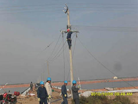 國(guó)慶期間,灌西供電所全體職工堅(jiān)守崗位,工作在中國(guó)華能風(fēng)力發(fā)電接電線路、集團(tuán)公司礦鹵二期工程作業(yè)施工現(xiàn)場(chǎng)。(圖為工人正在架設(shè)線路)(楊守全)
