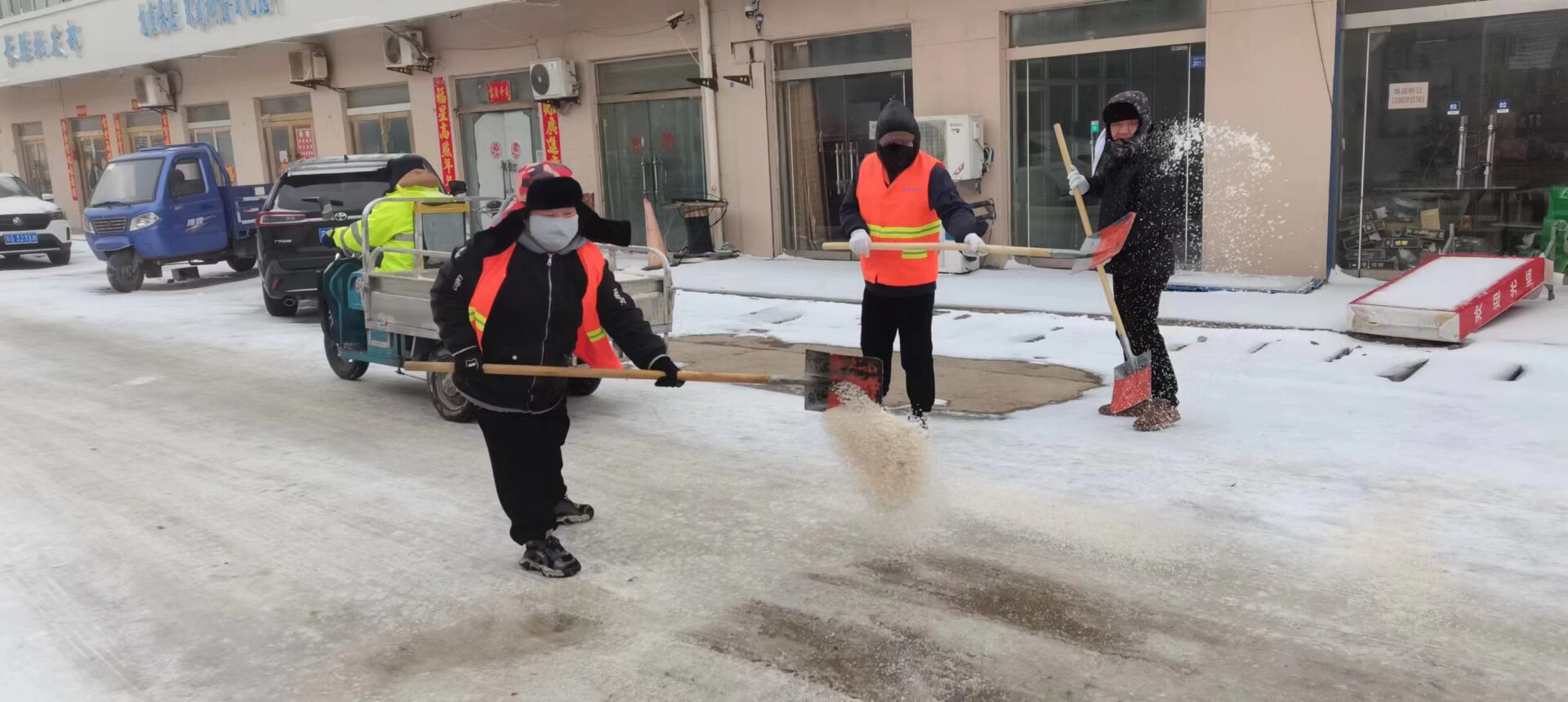 “紅色暖流”為守護“民生溫度”保駕護航。面對今年新春以來首個惡劣天氣的“大考”,公司廣大黨員以雪為令,聞雪而動,充分發(fā)揮黨組織戰(zhàn)斗堡壘作用和黨員的先鋒模范作用,帶領廣大員工浴“雪”奮戰(zhàn),組成應急黨員突擊隊,應對極端天氣造成的不利影響,24小時不間斷值守。對日曬制鹽區(qū)域、中二圩街道等主次干道12000余米進行清雪除冰。同時,建立應急隊伍工作群,旨在快速解決職工群眾關注的熱點和難點問題,不斷織密民生保障網,用微服務暢通大民生,以小實事彰顯大擔當。(西宣)