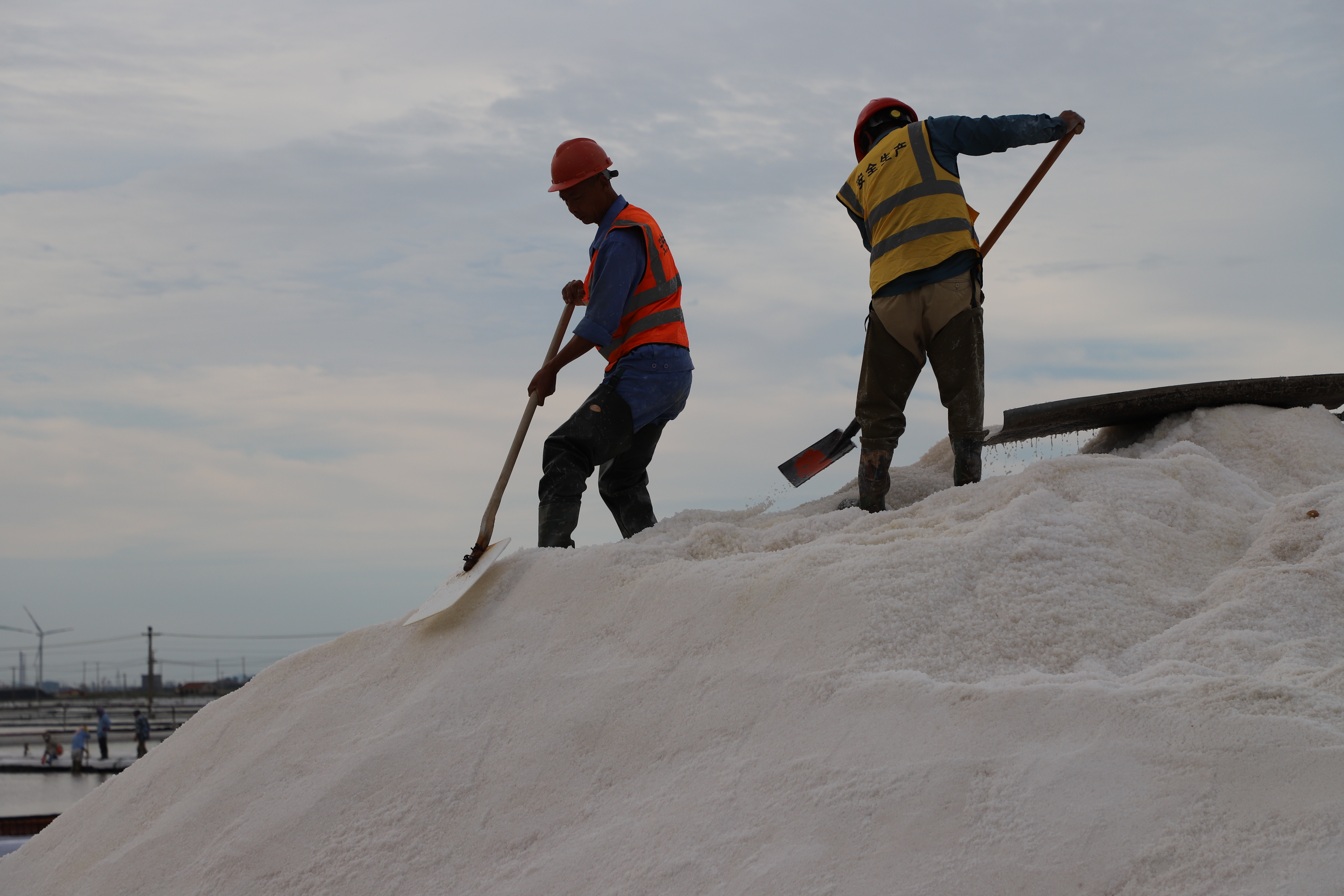 原鹽生產(chǎn)不松勁。每年的國慶假期總是與“秋扒”不期而遇。由于受連續(xù)的陰雨天氣影響,今年的秋扒工作一度延后。9月29日--9月30日,凌晨5點鐘,日曬鹽田的鹽圩小路像往常一樣成了一道最美的風(fēng)景線,鹽工們?nèi)蔽溲b奔赴各自工作點位進行收拉塑布、排淡等工作。為了搶時間,抓進度,鹽工們緊鑼密鼓地忙碌起來,籌備扒鹽工作,天氣剛轉(zhuǎn)好,只見有的在整理塑布,有的破碴,10月2日,10臺扒鹽機組全部運轉(zhuǎn)起來,潔白的鹽廩逐漸擴大,節(jié)日期間將扒鹽30000余噸。