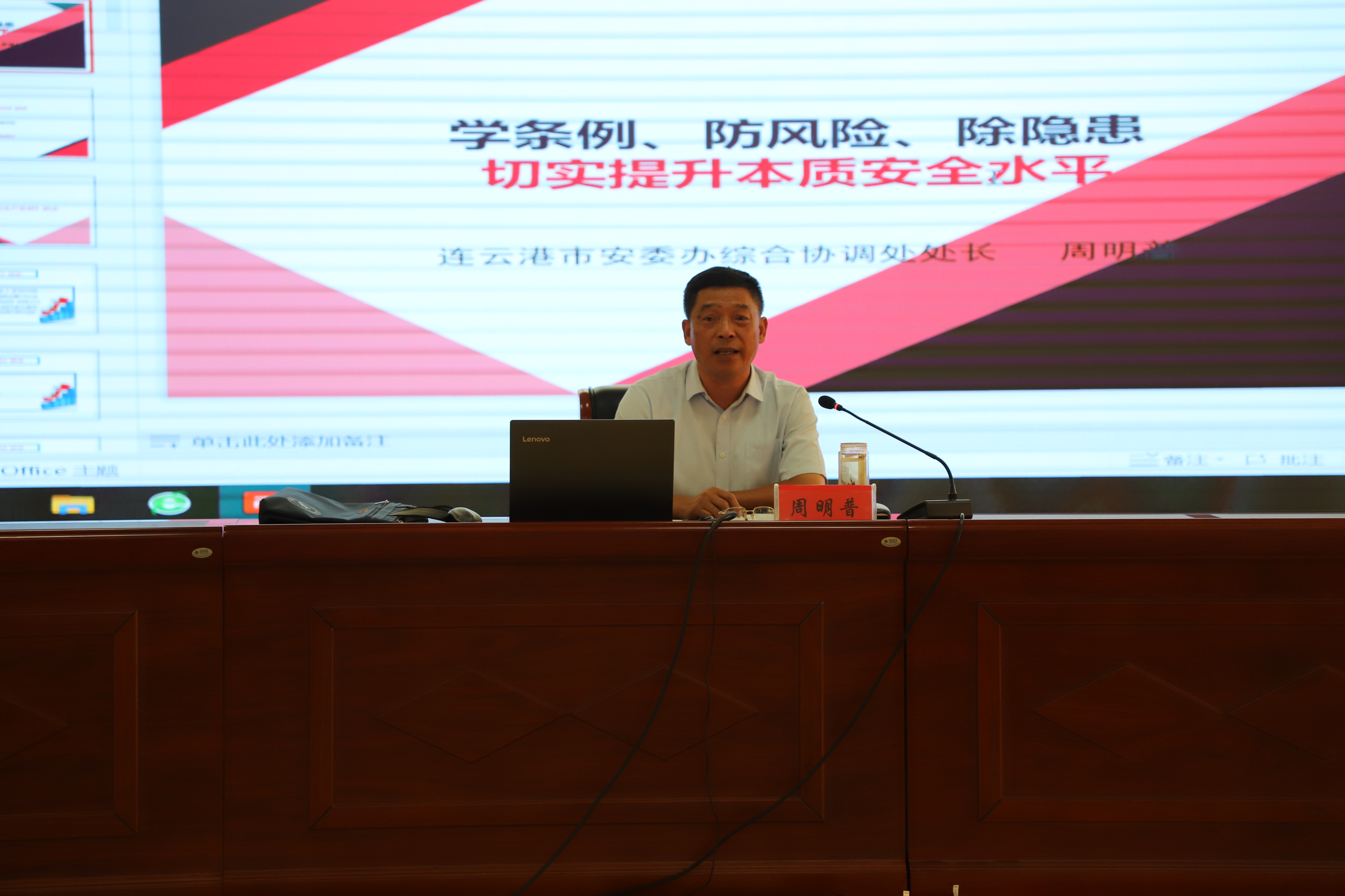 周處長對新《江蘇省安全生產(chǎn)條例》、安全生產(chǎn)重大事故隱患排查整治專項(xiàng)行動、突出抓好當(dāng)前安全管理重點(diǎn)防范建議作了深入淺出的講解,同時(shí)結(jié)合我公司實(shí)際,提出很多建設(shè)性意見。