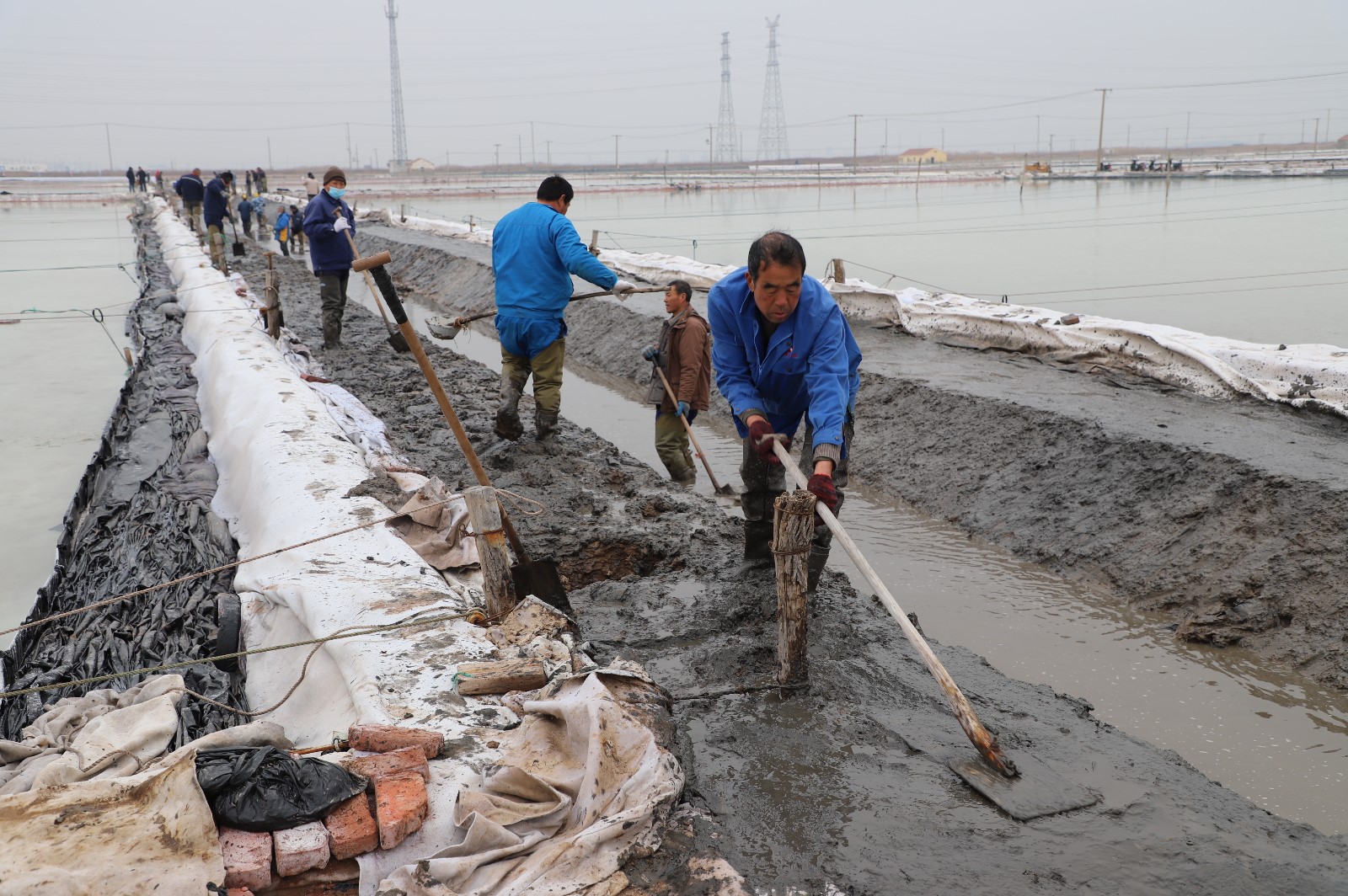 “冬準(zhǔn)工作已接近尾聲,在春扒工作開始之前,我們集全公司之力在做好保鹽保鹵工作的基礎(chǔ)上,加強(qiáng)對排鹵及回鹵溝道改造等亮化灘場文明建設(shè)工程,完善塘洼清淤工程,打造完整的生態(tài)制鹽系統(tǒng),為原鹽豐產(chǎn)豐收、提質(zhì)增效打好基礎(chǔ)。”新河制鹽分公司支部書記王超介紹道。
