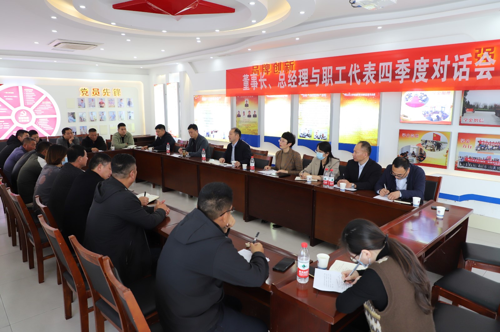 2022年11月3日下午,職工代表與公司董事長、總經(jīng)理齊聚一堂,就生產(chǎn)生活中遇到的問題提建議、獻良策。