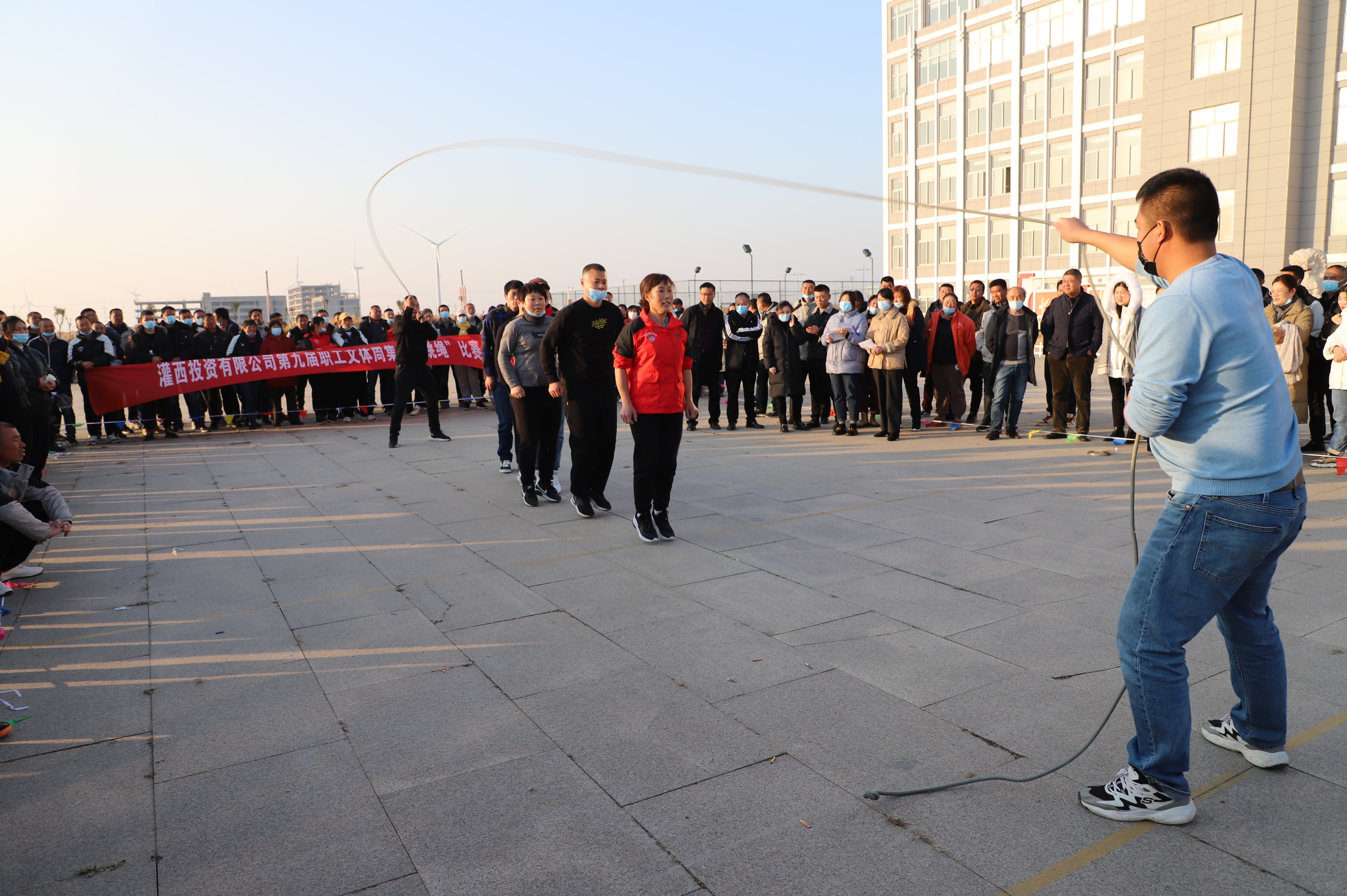 隨后進行跳繩比賽,來自南翼、新河、埒南等10支參賽隊伍逐一上臺比賽,觀眾隨著場上比賽隊員跳繩的節(jié)奏,不約而同地打著節(jié)拍、數著數,最終埒南制鹽公司代表隊憑借刻苦訓練與創(chuàng)新——參賽隊員手牽手共同協(xié)作,奪得第一名,新河制鹽公司、宵洋物流公司、生產服務中心分獲二至四名。(西宣)