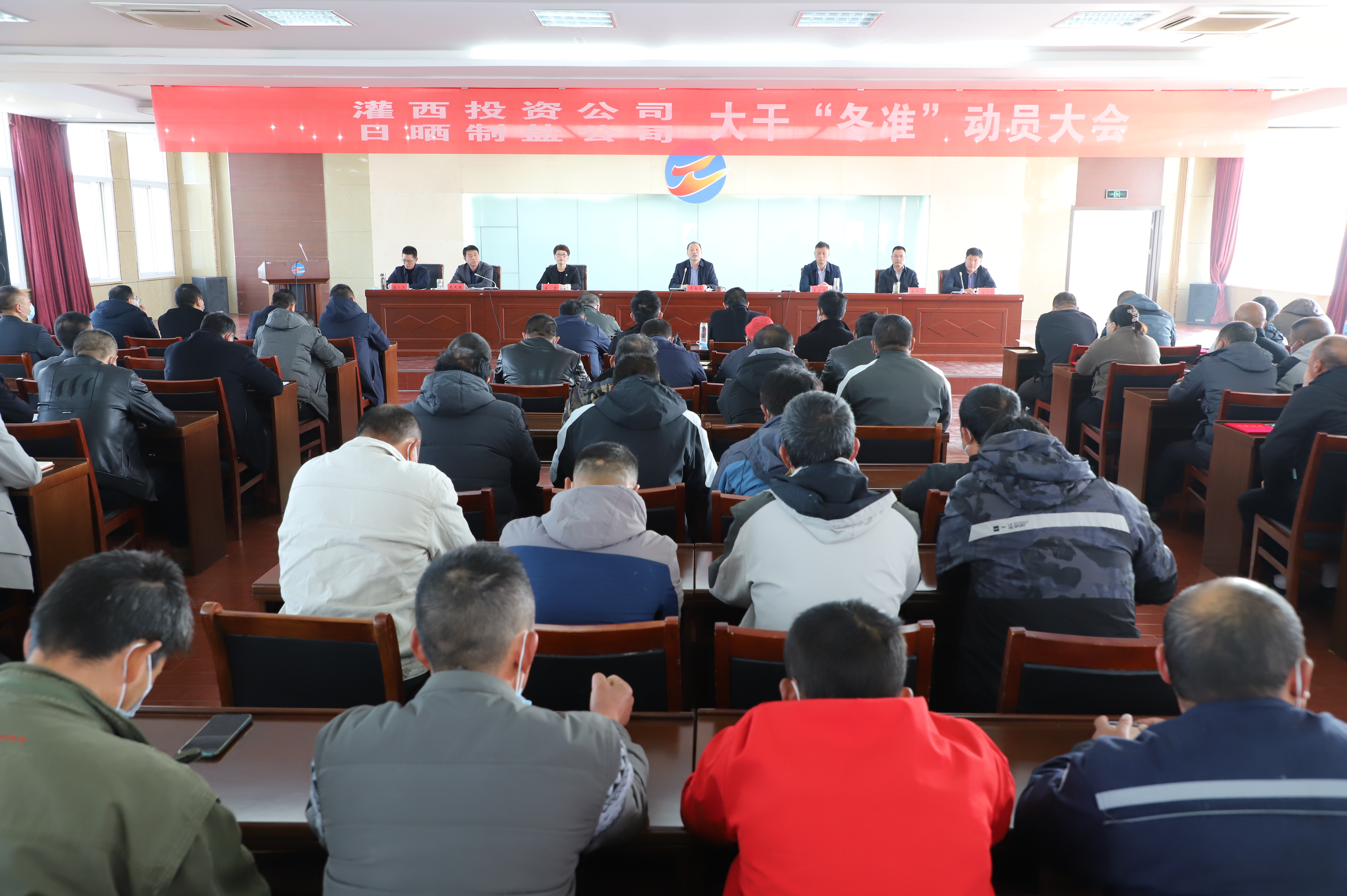 11月19日,灌西投資公司、日曬制鹽公司在機關(guān)五樓召開大干“冬準(zhǔn)”動員大會,全面部署冬準(zhǔn)工作,切實做好今冬明春的各項工作,投資公司班子成員,各單位黨政負(fù)責(zé)人、機關(guān)副職級以上管理人員、全體班組長及受表彰人員參加會議。