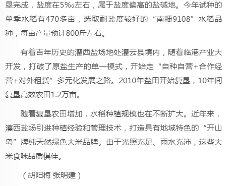 有著百年歷史的灌西鹽場地處灌云縣境內(nèi),隨著臨港產(chǎn)業(yè)大開發(fā),打破了原鹽生產(chǎn)的單一模式,開始走“自種自營+合作經(jīng)營+對外租賃”多元化發(fā)展之路。2010年鹽田開始復(fù)墾,10年間復(fù)墾高效農(nóng)田1.2萬畝。