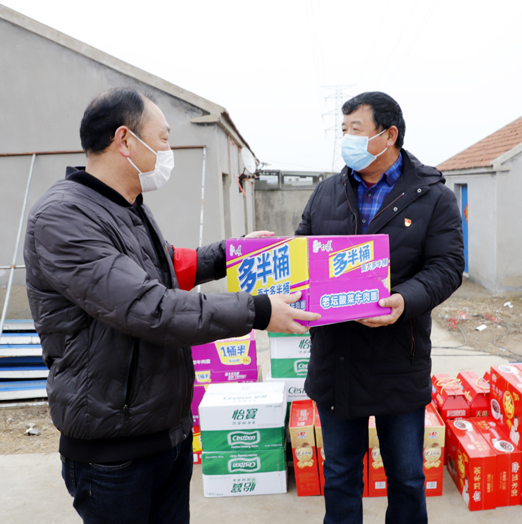 2月14日下午,王貴華、仇海軍兩位愛心人事委托灌西水產(chǎn)養(yǎng)殖服務公司經(jīng)理劉海勇,幫價值6000余元的礦泉水、方便食品送到奮戰(zhàn)在防疫一線的職工手中。劉海勇代表兩位愛心人事對疫情防控一線的職工舍小家、顧大家,眾志成城、抗擊疫情的奉獻精神表示崇高的敬意,希望防控人員加強自身防護,注意身體健康。