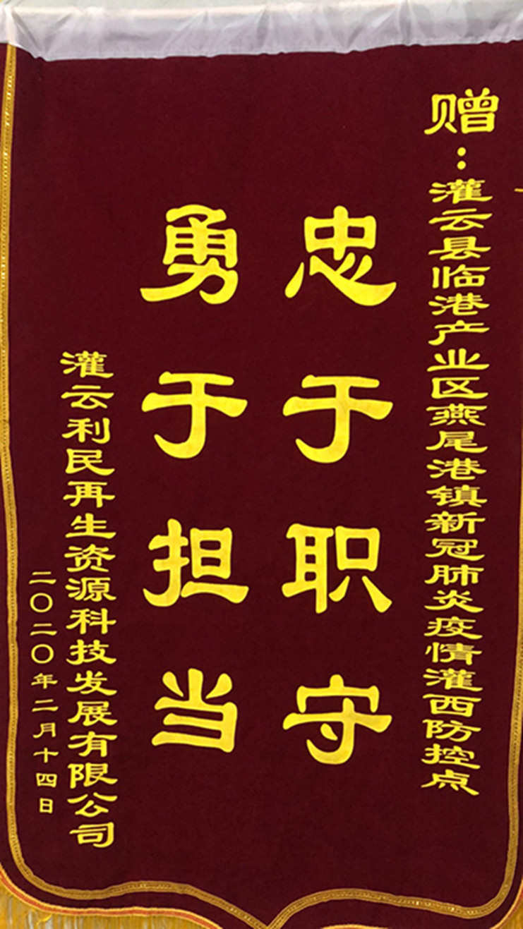“非常感謝你們對我們?nèi)夜镜氖刈o,為我們廣大職工筑牢了一道防疫情的銅墻鐵壁,你們辛苦了!”近日,連云港臨海新材、灌云利民再生資源、江蘇沙英喜三家公司分別為新冠肺炎疫情灌西防控點值守人員送來三面錦旗,感謝灌西投資公司值守人員在疫情期間為疫情防控工作作出的貢獻。