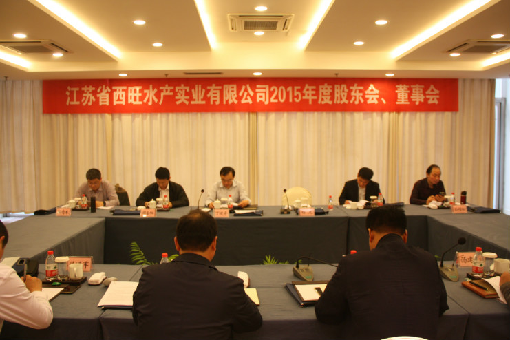 4月22日下午,江蘇省西旺水產(chǎn)實(shí)業(yè)公司2015年度股東會(huì)、董事會(huì)在墟溝召開,省沿海開發(fā)集團(tuán)總經(jīng)理丁建奇、副總經(jīng)理周金陽(yáng)等股東代表、董事代表出席了會(huì)議。會(huì)議由連云港市工業(yè)投資集團(tuán)副總經(jīng)理?xiàng)顕?guó)新主持。