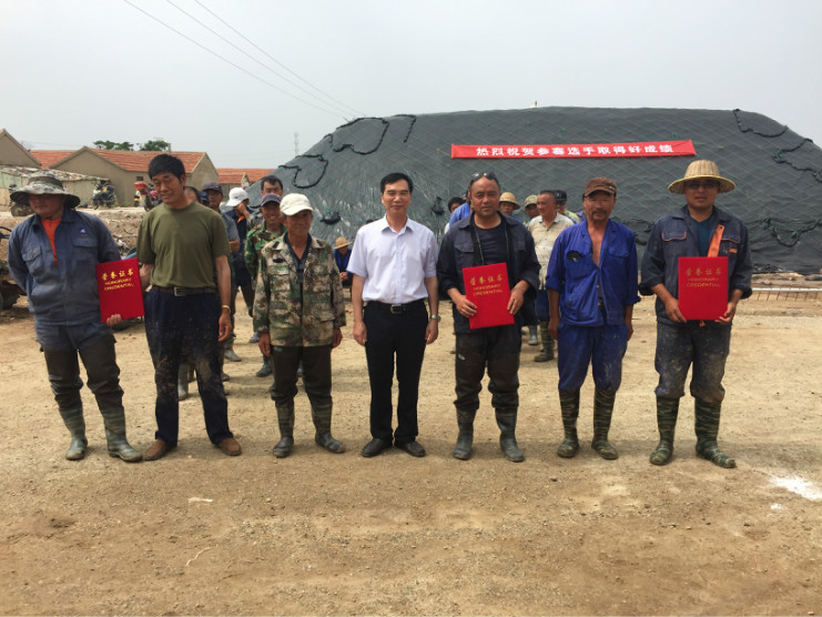 比賽開始前,生產(chǎn)服務(wù)公司經(jīng)理王緒前首先就天溝建設(shè)要求、評分標(biāo)準(zhǔn)等事項(xiàng)進(jìn)行了現(xiàn)場說明。7點(diǎn)20分,隨著裁判員的一聲令下,比賽正式開始。參賽選手們按照賽前抓鬮序號,迅速投入到比賽中。賽場上,每一組選手都分工明確,澆水、翻泥、踩實(shí)、做埝、整平一氣呵成,大家都表現(xiàn)的極為熟練,充分展示了參賽選手扎實(shí)的基本功。比賽中,三位裁判在比賽場地來回巡查,認(rèn)真記錄每一組參賽選手的勞動(dòng)過程,力求做到公平、公正。9點(diǎn)20分,隨著最后一組選手的工作完成,比賽正式結(jié)束。隨即,三位裁判又根據(jù)比賽過程中的記錄情況結(jié)合最終工程質(zhì)量對每一參賽小組進(jìn)行綜合評分。最終,來自埒南制鹽分公司的章保衛(wèi)、高明成榮獲比賽第一名;江海兵、張春連以及尹步松、汪禮兵兩組選手榮獲第二名;新河制鹽分公司朱明、戴繼明,郁雷敏、李正軍,楊春旭、史春海三組選手榮獲第三名。
