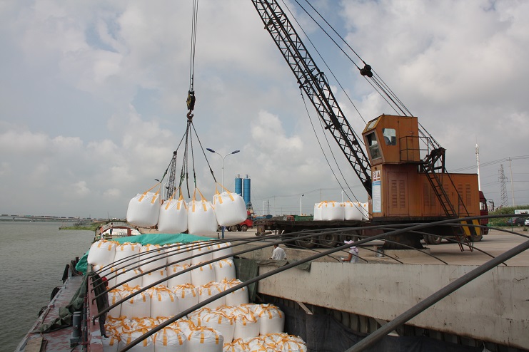 8月3日上午9點左右,當(dāng)筆者來到宵洋物流公司五灌河碼頭時,這里已經(jīng)到處是工人們忙碌的身影,吊機揮舞巨臂、車輛川流不息、現(xiàn)場管理者來回奔忙指揮、作業(yè)人員揮汗如雨緊張忙碌。