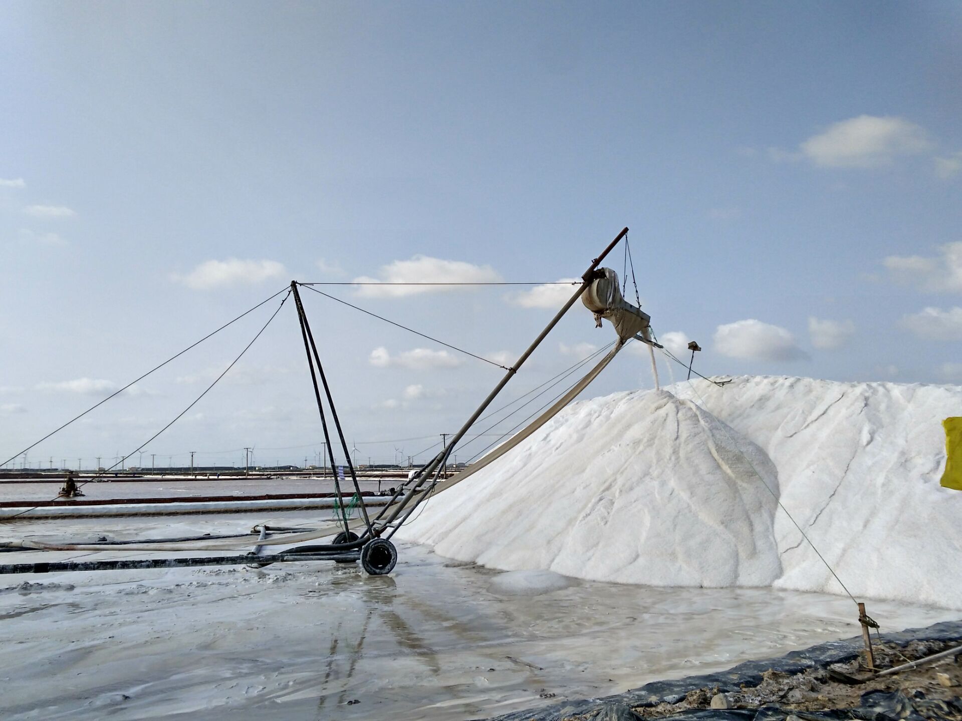 10月6日,在日曬制鹽新河分公司十班,幾名鹽工在不遠(yuǎn)處鹽池內(nèi)整理扒過(guò)鹽的格塊,一臺(tái)唐三零機(jī)械正在最后一塊鹽池內(nèi)緩緩移動(dòng)集鹽,鹽泵運(yùn)轉(zhuǎn)不停,輸送鹽上廩,一條鹽廩即將筑成。在國(guó)慶假日期間,日曬制鹽公司值班人員不脫崗、生產(chǎn)經(jīng)營(yíng)不斷線、鹽業(yè)生產(chǎn)不停歇,入秋以來(lái),已扒鹽5萬(wàn)噸,為公司的國(guó)慶假日增添了道道靚麗的風(fēng)景。