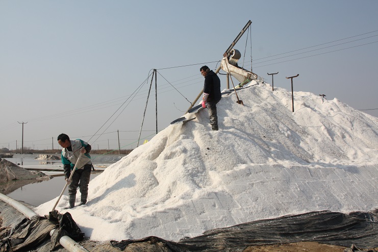 在4班現(xiàn)場,我們看到“唐三零”操作手正在嫻熟的駕駛著機器在鹽池內(nèi)緩緩移動,以認真的態(tài)度,飽滿的熱情進行著扒鹽工作。在不遠處的鹽廩上,雪白的原鹽正通過扒鹽篩匯集而下,大廩工也不時的用分離板進行疏導工作,潔白晶瑩的原鹽蔚然成廩。為了確保原鹽質(zhì)量,生產(chǎn)服務(wù)公司化驗室的工作人員還在扒鹽現(xiàn)場對鹽質(zhì)進行跟蹤監(jiān)測。據(jù)介紹,在扒鹽設(shè)備上,今年日曬制鹽公司除了全面推廣使用五寸管道扒鹽外,又進行了創(chuàng)新,將原來鹽、鹵分離篩上帆布引流裝置改為管道引流,這不僅有效降低了引流裝置的損壞幾率,減少了維修成本,更提高了設(shè)備的使用安全性。據(jù)了解,新河、埒南兩個制鹽分公司計劃共投入8臺扒鹽機組到此次扒鹽工作中來,目前已有七臺機組陸續(xù)出鹽,最后一臺機組也將在近日投入扒鹽工作,為原鹽銷售工作的正常有序開展提供保證。(封楊)