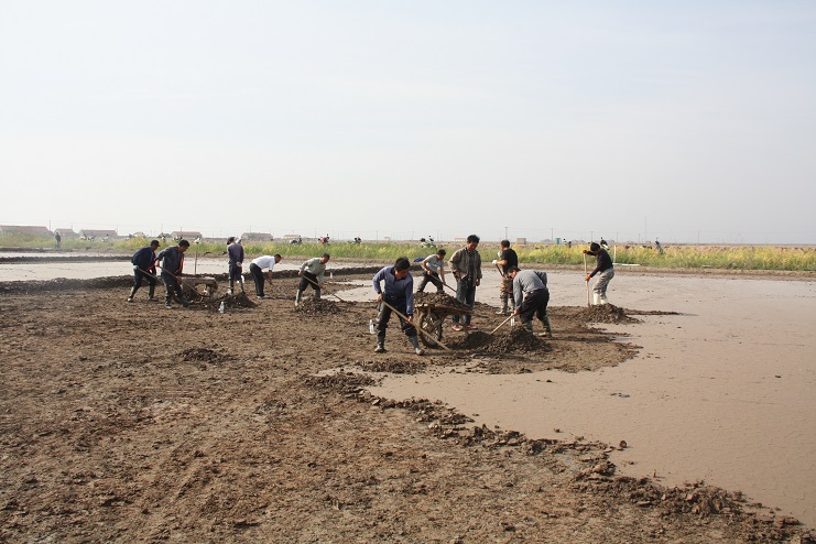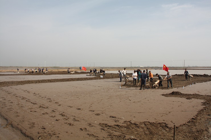 據(jù)了解,《淮鹽制作技藝》已于2015年成功申報國家級非物質文化遺產(chǎn)保護項目并審核通過。此次央視攝制組主要圍繞淮鹽發(fā)展歷史來我公司拍攝平面灘、對口灘等制鹽工藝及過程,為制作淮鹽文化宣傳片收集影像資料。埒南制鹽分公司黨支部在接到通知后,高度重視此項工作,迅速組織黨員職工及有經(jīng)驗的班組長投入到灘地改造工作中來,為確保此次拍攝工作順利進行奠定了扎實的基礎。活動現(xiàn)場,大家按照事先劃分好的區(qū)域分工協(xié)作,互相配合,有鏟泥的,有利用獨輪車推泥的,不一會功夫就完成了四條池埝的制作。據(jù)“淮鹽文化傳承人”韓井軍介紹,下一步在平面灘制作完成后,再對格塊進行晾曬、“三嗆四壓”等工序后才能投入使用。(封楊)