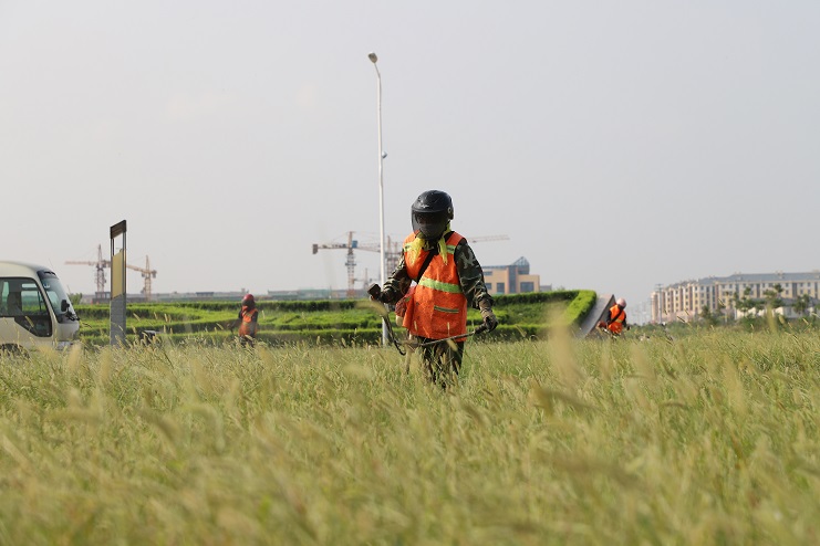 連日來,在臨港產(chǎn)業(yè)區(qū)辦公樓前,我們看到幾名南翼綠化公司的工人正在草坪上揮動割草機,忙碌的進行著除草作業(yè)。據(jù)了解,為了避開高溫時段,他們早上6點就開始工作,許多綠化工人都是五點多在家匆忙吃完早飯就趕往工作現(xiàn)場,有的甚至空腹上陣。工作現(xiàn)場,在經(jīng)過一個夏天的生長,不少地方的雜草都近半米高,草叢內(nèi)還有不少的碎石子等雜物,為了做好自身防護,工人們穿著厚厚的衣褲,戴著口罩、頭盔,肩扛除草機,一工作就是一上午。雖然近階段氣溫逐漸下降,但近30°的氣溫還是讓工人們吃不消。為了盡快完成工作目標,每一名工人都在咬牙堅持,默默地為更多的人營造一個優(yōu)美、整潔的環(huán)境而做出自己的貢獻。(封楊)