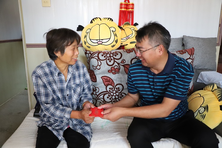 “現(xiàn)在身體還好嗎?兒子現(xiàn)在怎么樣?”在困難群眾于蘭英家里,王德志董事長一進門就關切的詢問她的生活狀況。“感謝公司黨委的關心和照顧,目前家里一切都好。”看到王德志董事長的到來,于蘭英有些激動的說道。