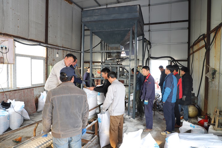 11月28日,我們在走訪宵洋物流公司筑包鹽基地時看到,原來銹蝕嚴重的卸料槽已經(jīng)進行了重新加固,車間外的加工設備也更換完畢并進行了防銹處理,幾名工人正在場地上進行人工原鹽筑包,經(jīng)過縫包后的原鹽正通過皮帶輸送機源源不斷的傳送到車廂內(nèi)。車間里,機電公司的員工們正在進行著磅秤的調(diào)試工作。據(jù)了解,為了最大限度的降低因設備更新而造成的影響,自11月9日筑包設備維護更新工作開始以來,該基地就采取人工筑包方式進行邊生產(chǎn)、邊更新。據(jù)介紹,目前筑包基地上廢舊的筑包設備已經(jīng)全部拆除,新設備基本安裝到位,部分留用的設備也進行了必要的維護保養(yǎng),目前正在進行最后的磅秤調(diào)試工作,待調(diào)試完畢即可投入使用。