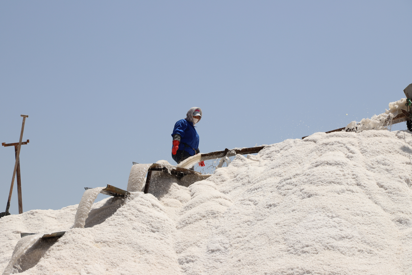 在新河十一班,扒鹽工作正在緊張的進(jìn)行之中,兩名員工在鹽廩上揮舞著木鍬,搬送著淌鹽的導(dǎo)流板做鹽廩,扒鹽員工跟時間賽跑,24小時不停機(jī)3班倒開機(jī)扒鹽,緊緊抓住當(dāng)前生產(chǎn)經(jīng)營的黃金季節(jié),搶抓扒鹽進(jìn)度,堅決實(shí)現(xiàn)時間任務(wù)雙過半。