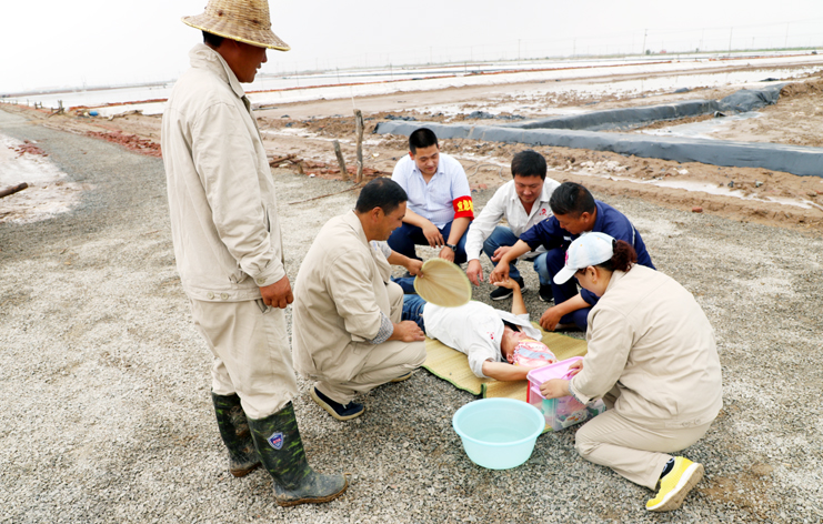 此次演練過程中,安全監(jiān)管部李長(zhǎng)軍主持了這次演練活動(dòng),埒南制鹽分公司職工及管理人員參與其中,演練模擬現(xiàn)場(chǎng)有三個(gè):1、職工在灘頭塑池堰上突然中暑(重度)。2、職工在廩基小鹽化鹵調(diào)鹵中接觸老化線路接頭時(shí)不慎觸電(傷害較重)。3、職工在上班途中三輛電瓶車相撞(跌傷較重)。在救援過程中,大家各司其職,齊心協(xié)力,配合默契,有條不紊成功完成了此次演練活動(dòng)。通過這次應(yīng)急演練,進(jìn)一步提高了公司員工應(yīng)對(duì)緊急事件的自我保護(hù)和防衛(wèi)能力,保證員工在發(fā)生突發(fā)事件時(shí),能熟練應(yīng)對(duì)、有序救援,最大限度地減少事故帶來的損害,切實(shí)保護(hù)員工的安全。