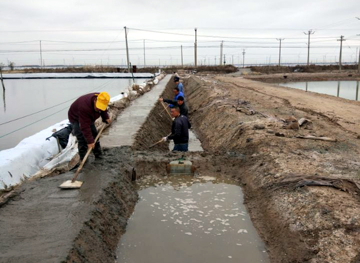 11班生產(chǎn)現(xiàn)場,職工們正在進行溝道清淤,池堰修整工作。11班是黨員模范班組,這個班冬準工作進度比別的班組快一些,班長章保衛(wèi)激情豪邁,信心飽滿,干好當(dāng)前,備戰(zhàn)明年,我們班的冬準工作標準要高,質(zhì)量要硬,進度要快,要確保各項工作走在公司前列,去年冬準,我們對一期灘場進行了維護保養(yǎng),今年冬準工作重點放在二期,到2019年冬準再把一,二期灘場維修保養(yǎng)一遍,那我們公司的生產(chǎn)能力、灘容灘貌將會上一個新的臺階,將會跨進制鹽行業(yè)的前列,這是一個敢想,敢干的年輕黨員,在他的心中己經(jīng)描繪一幅日曬制鹽明天發(fā)展的美好藍圖。其他生產(chǎn)班組,有的在維護灘場,清理雜草雜物,有的在修建標準化廩基,冬準工作有序推進,處處都可以看到火熱的勞動場面。