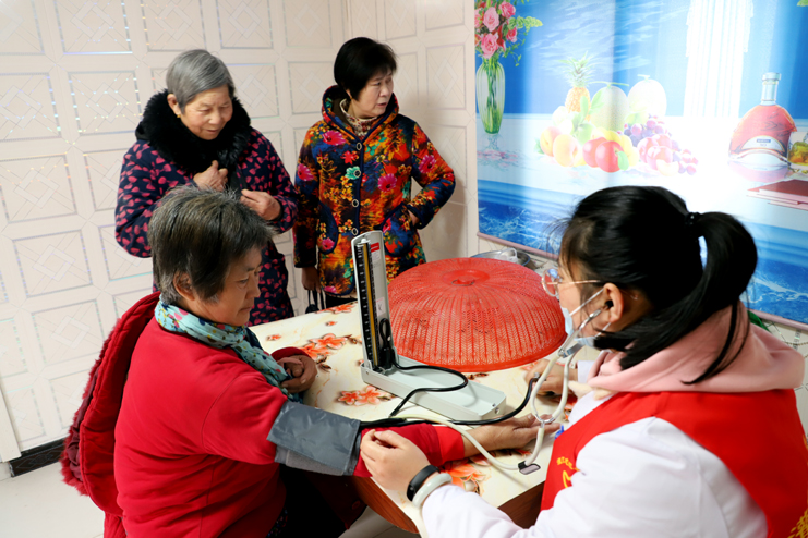 志愿者服務隊上午共走訪了22戶居民家庭,為58位居民進行了身體檢查,并發(fā)放和講解高血壓病癥知識和用藥常識。志愿者們耐心細致地為居民進行身體檢查,特別是走訪空巢老人家庭,與老人交談,拉家常,給老人以關(guān)愛。