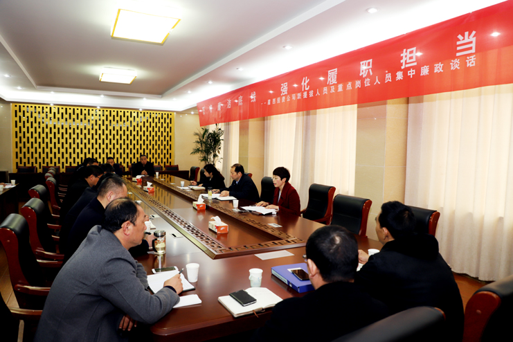 為進(jìn)一步推進(jìn)公司黨風(fēng)廉政建設(shè),提高黨員干部廉潔自律意識(shí),4月11日上午,灌西公司組織開展“堅(jiān)守廉潔底線強(qiáng)化履職擔(dān)當(dāng)”2019年新提拔人員及重點(diǎn)崗位人員集體廉政談話,黨委書記、董事長(zhǎng)、總經(jīng)理李國文,黨委副書記、紀(jì)委書記、工會(huì)主席王宏,新提拔人員以及重點(diǎn)崗位人員參加了廉政談話。