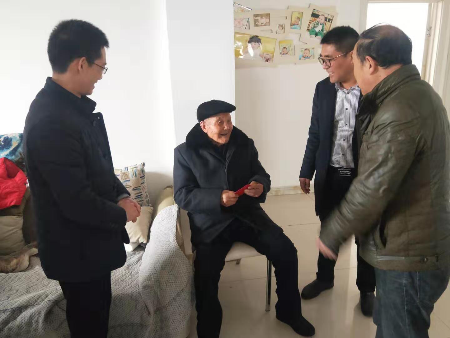 在邵佃成家中,大家與老人拉家常,了解日常飲食起居和身體狀況,祝愿老人幸福安康,健康長壽。據(jù)了解,已有百歲高齡的邵佃成,是公司年齡最大的黨員,生于1921年,有著近60年黨齡,建國前參加工作,為祖國的建設(shè)做出了偉大的貢獻。