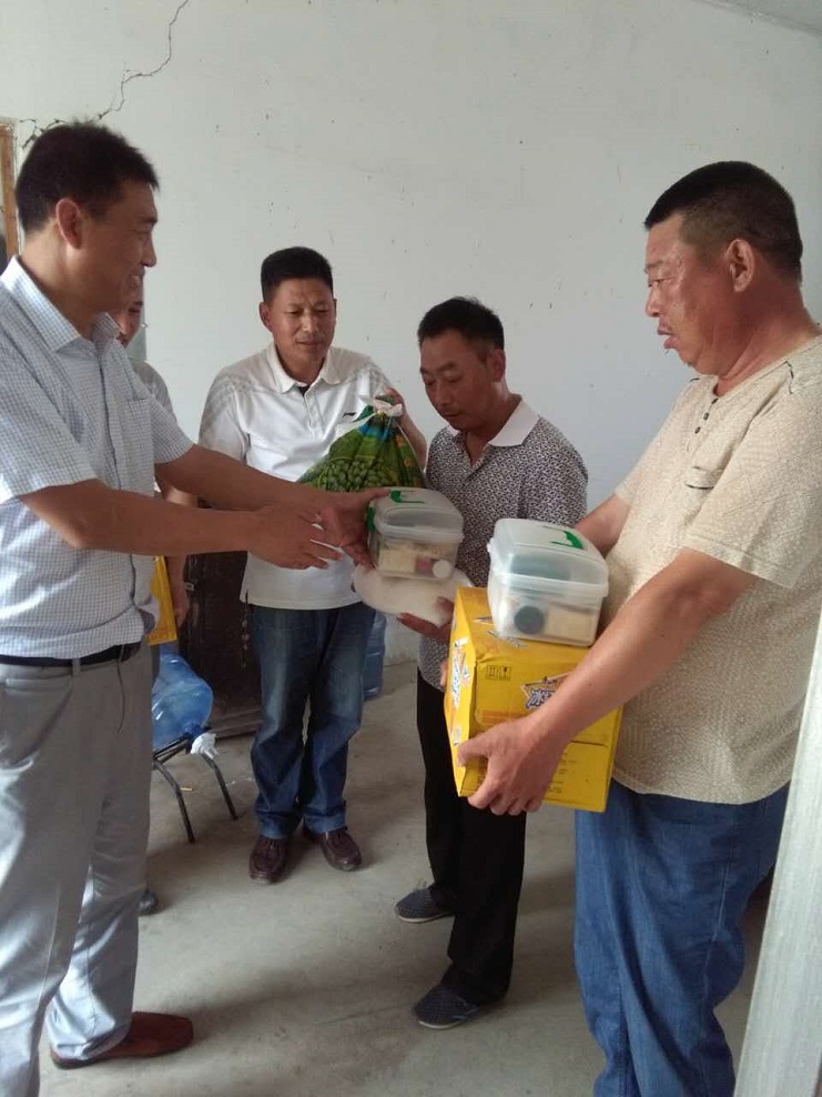 由于近日連續(xù)高溫,西旺水產(chǎn)公司按照投資公司的通知精神,積極行動起來,認真做好防暑降溫工作。一時及時調(diào)整池塘值班點上的人員作息時間,避開高溫時段,備好了兩套防暑藥物盒;二是發(fā)放《夏季安全生產(chǎn)防范重點》材料到每位養(yǎng)殖戶,宣傳防暑預(yù)防、中暑急救等知識;三是開展“送清涼”工作,購買防暑物品送到一線員工手里,表示慰問。圖為到西旺公司領(lǐng)導到一線為員工送上防暑物品。(西旺工會)