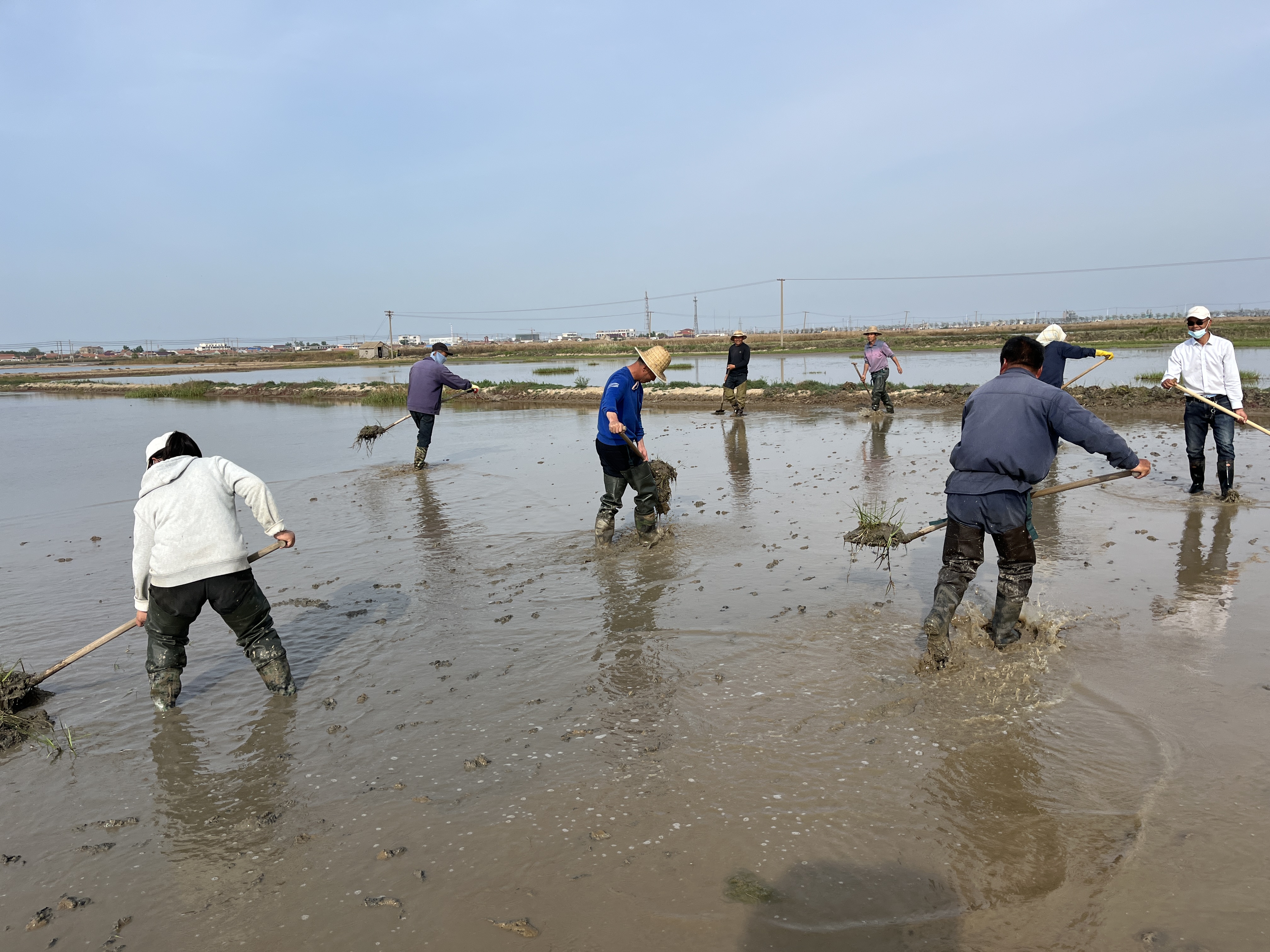 隨著氣溫的升高和蒸發(fā)量的逐步增加,2 班“甜頭”大米草即將進入生長旺盛期。這些大米草嚴重制約了正常制鹵工作,給生產(chǎn)帶來了不小的挑戰(zhàn)。為了防范未然,黨支部帶領職工們積極行動起來,他們齊心協(xié)力努力理順走水路線,不斷完善灘地條件。大家充分發(fā)揮團結協(xié)作的精神,為保障生產(chǎn)的順利進行貢獻著自己的力量。