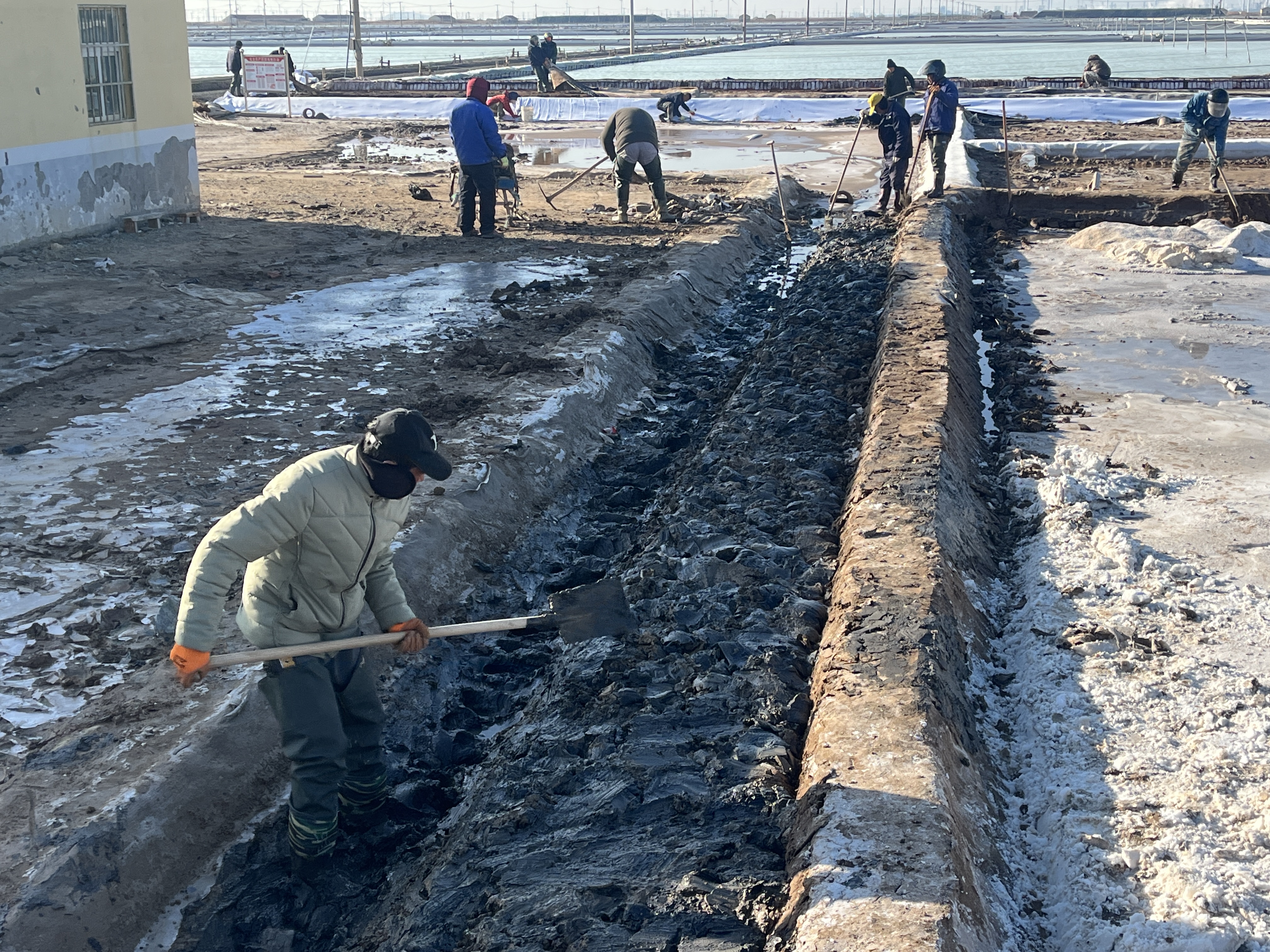 冬季是我們?nèi)諘裰汽}收儲鹵水、扒土塘、整理灘場文明的最佳時期,也是為2024年工作起好頭,邁好步的關鍵時期,作為重擔我先挑,沖鋒我在前,充分調(diào)動一切積極因素,咬定目標,盡最大努力為班組創(chuàng)造良好的工作條件,發(fā)揮每一個班組的最大潛能,確保越冬鹵水除硫率達到95%以上;鹵水接受率100%;長鹽4萬噸;氯化鈉含純96.2%以上;單耗控制在4.2立方/噸以內(nèi);硫酸根含量控制在0.35%以下,抓好冬季風性咬制鹵水;安全生產(chǎn)無事故。對任務的完成情況做到每周有安排,每周有總結(jié),確保各項工作按部、有序、穩(wěn)定向前推進。成立“指揮部”掛圖作戰(zhàn),打好冬準戰(zhàn)役:各班組按照標準化、規(guī)范化建設池埝,精心修復結(jié)晶池堵頭埝截,修整池埝150余條,1.28萬余米;
