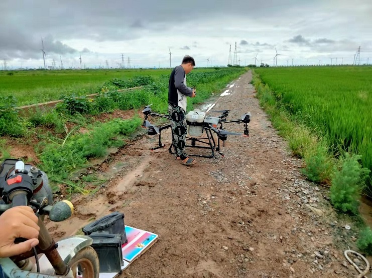近日,明威公司農(nóng)田水稻進入齊穗期,是水稻形成產(chǎn)量的關鍵時期,為切實做好水稻該期病蟲害的防治工作,明威公司組織員工在下雨間隙,用一臺無人機,對二灣種植區(qū)的稻田噴施除蟲農(nóng)藥——齊穗藥,以增強水稻對病蟲害的防控能力。